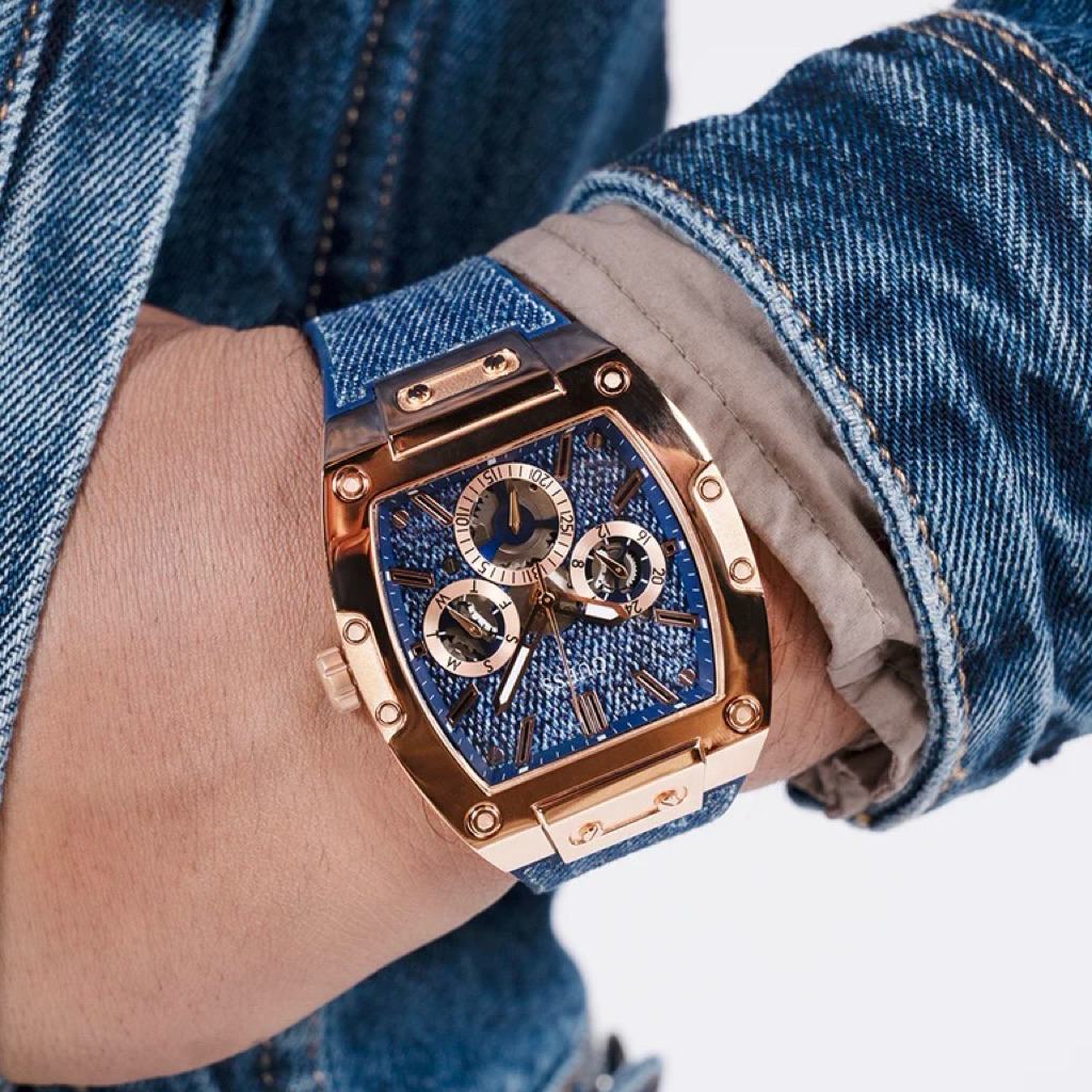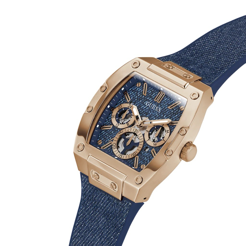 Guess Phoenix GW0786G2 Semi Skeleton Denim Dial Denim Silicone Strap