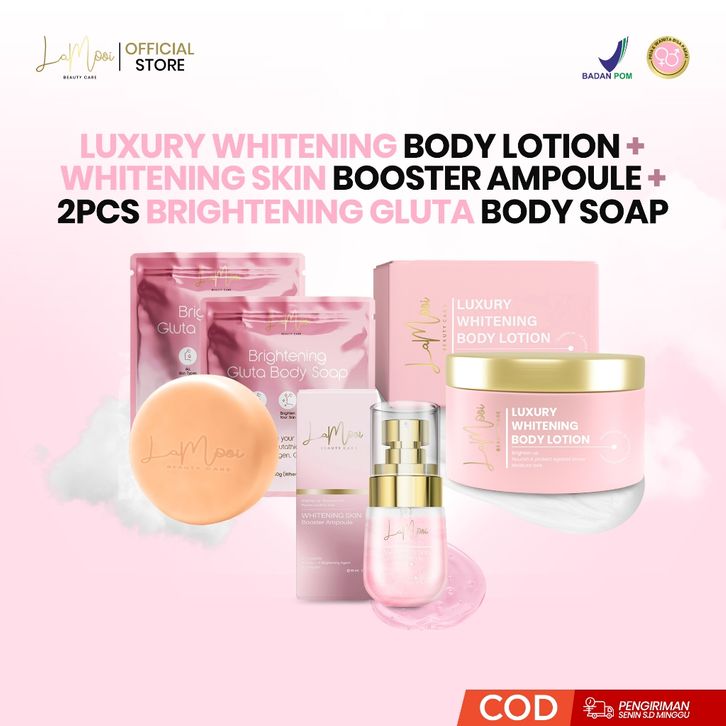 LaMooi - Luxury Whitening Body Lotion + Booster Whitening Body AMPOULE + 2PCS Sabun Gluta