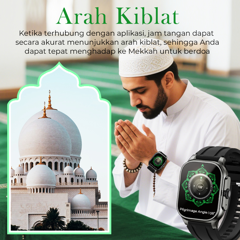 AmazeFan Muslim SmartWatch M77 MAX - 114 surah Al-Qur'an Jam Tangan Pintar Pria Wanita dengan Adzan Reminder Al-Qur'an Tasbih