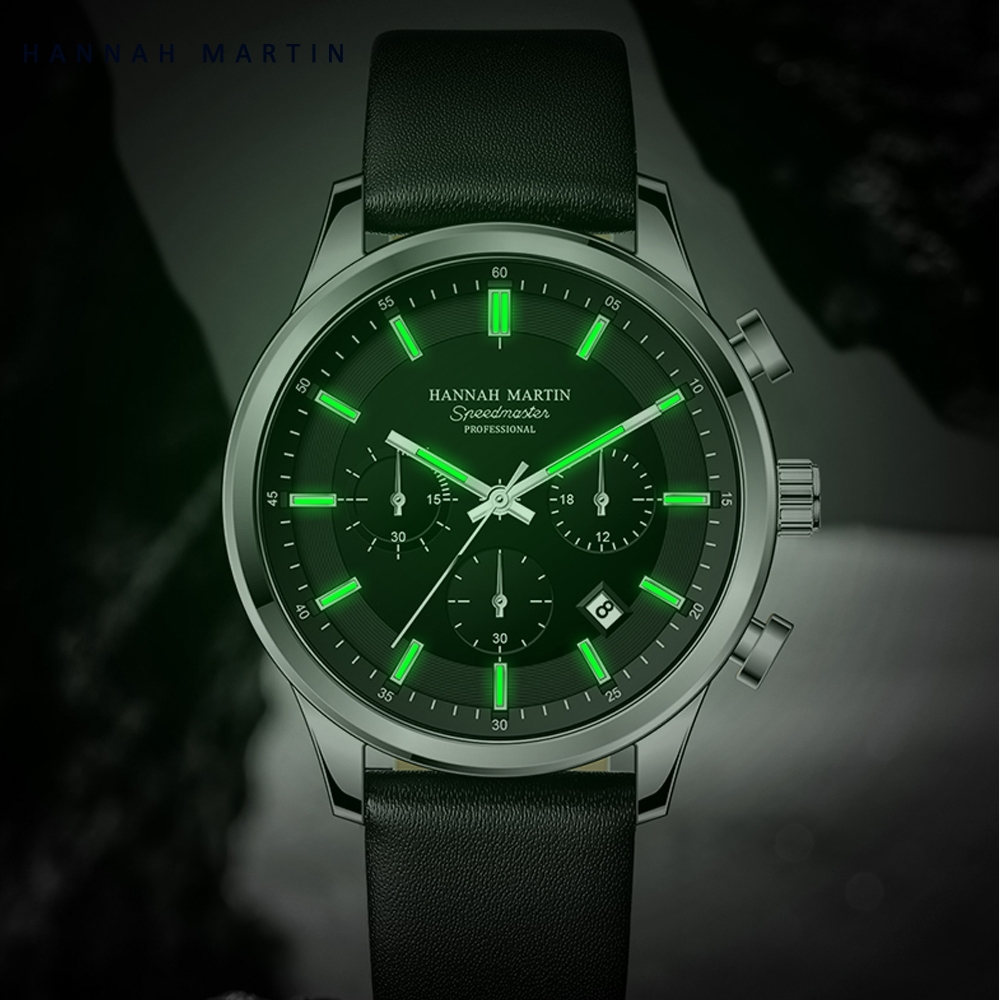 HANNAH MARTIN Jam Tangan Pria 100 PERSEN Original Kronograf Premium Hitam Kulit Tahan air Quartz Analog Laki Jam Cowok Anti Air 1431
