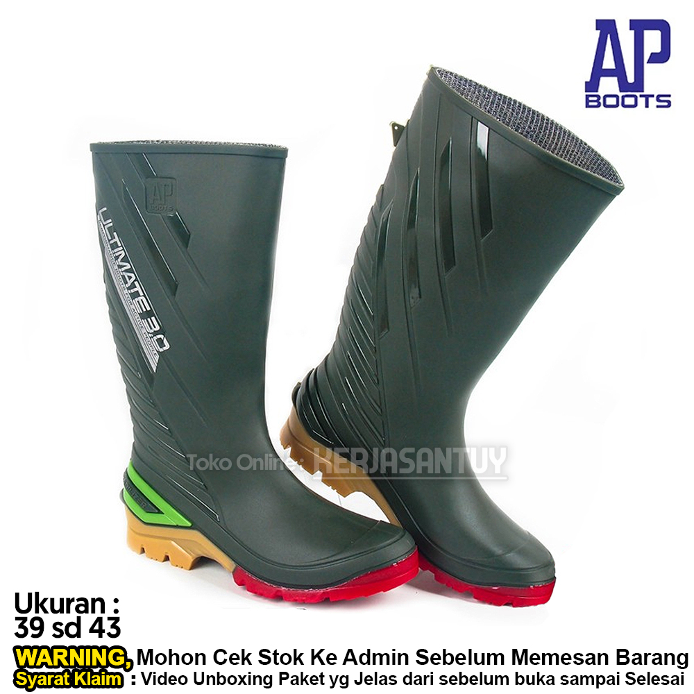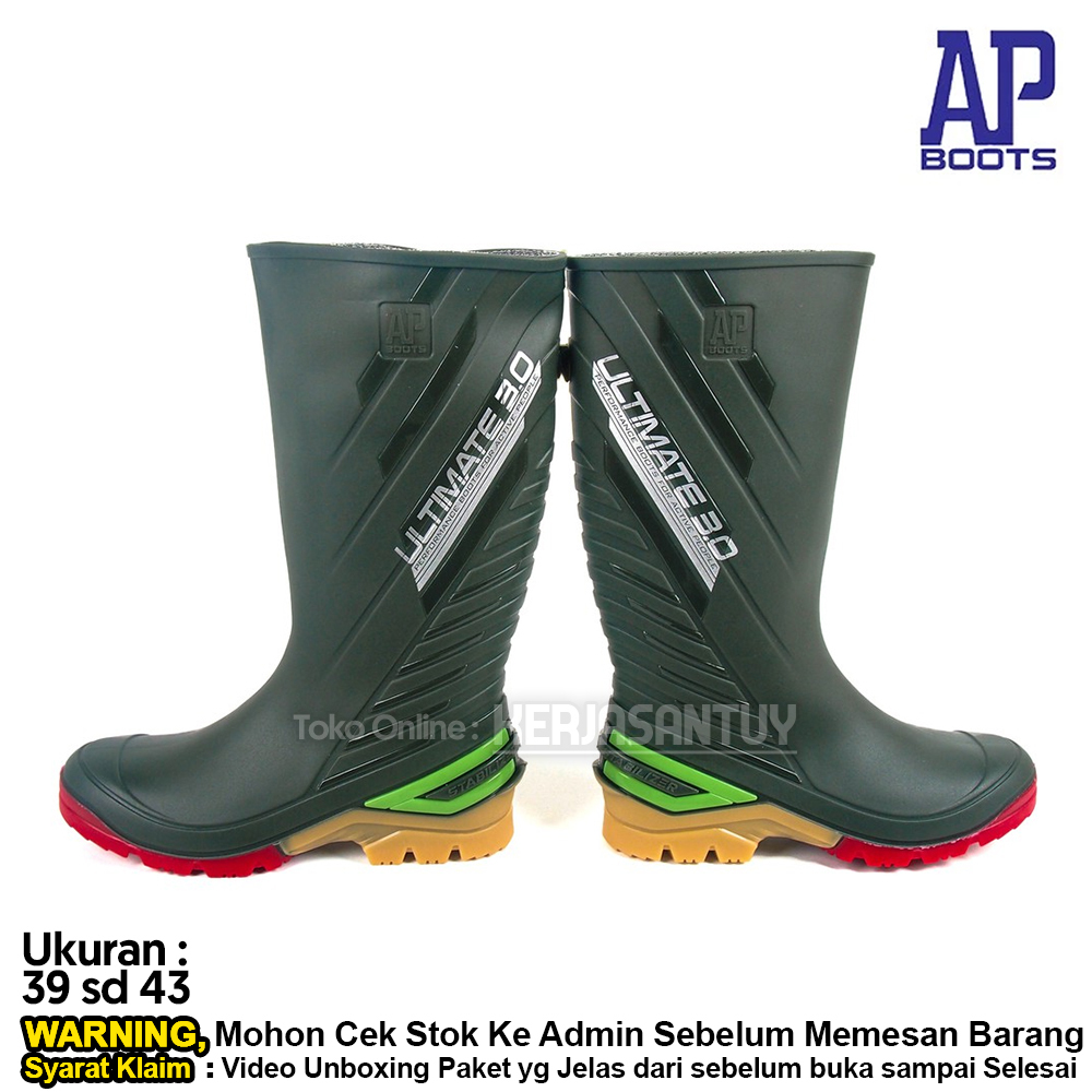 Sepatu Boot Karet AP BOOTS Ultimate 2015 Hijau Tua / PVC Rain Boots / Sepatu Boot Hujan Kerja Proyek Pabrik Kebun Tamban