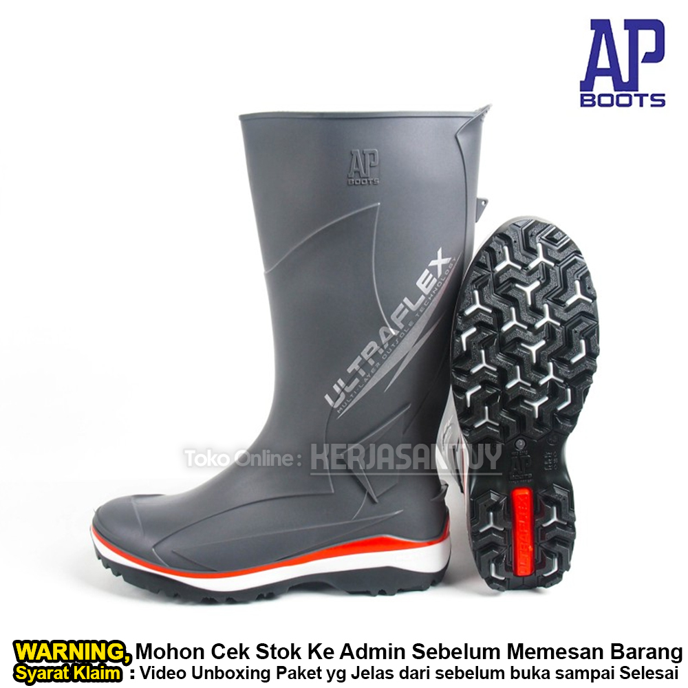 Sepatu Boot Karet AP BOOTS ULTRAFLEX 2018 ABU / PVC Rain Boots / Sepatu Boot Hujan Kerja Proyek Pabrik Kebun Tambang Kon