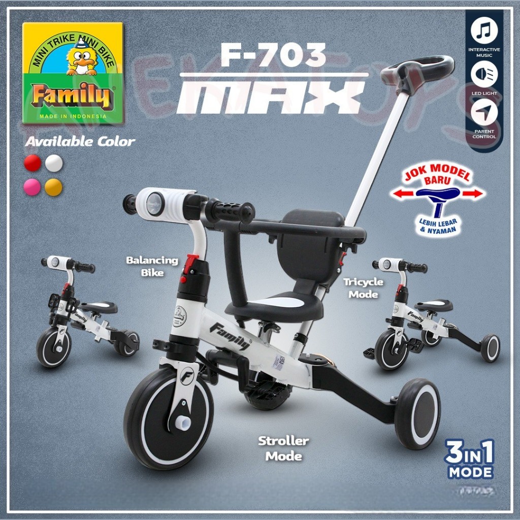 Balance Bike Anak Family F703 Balance/ Sepeda Roda Tiga Anak 3in1 Mode
