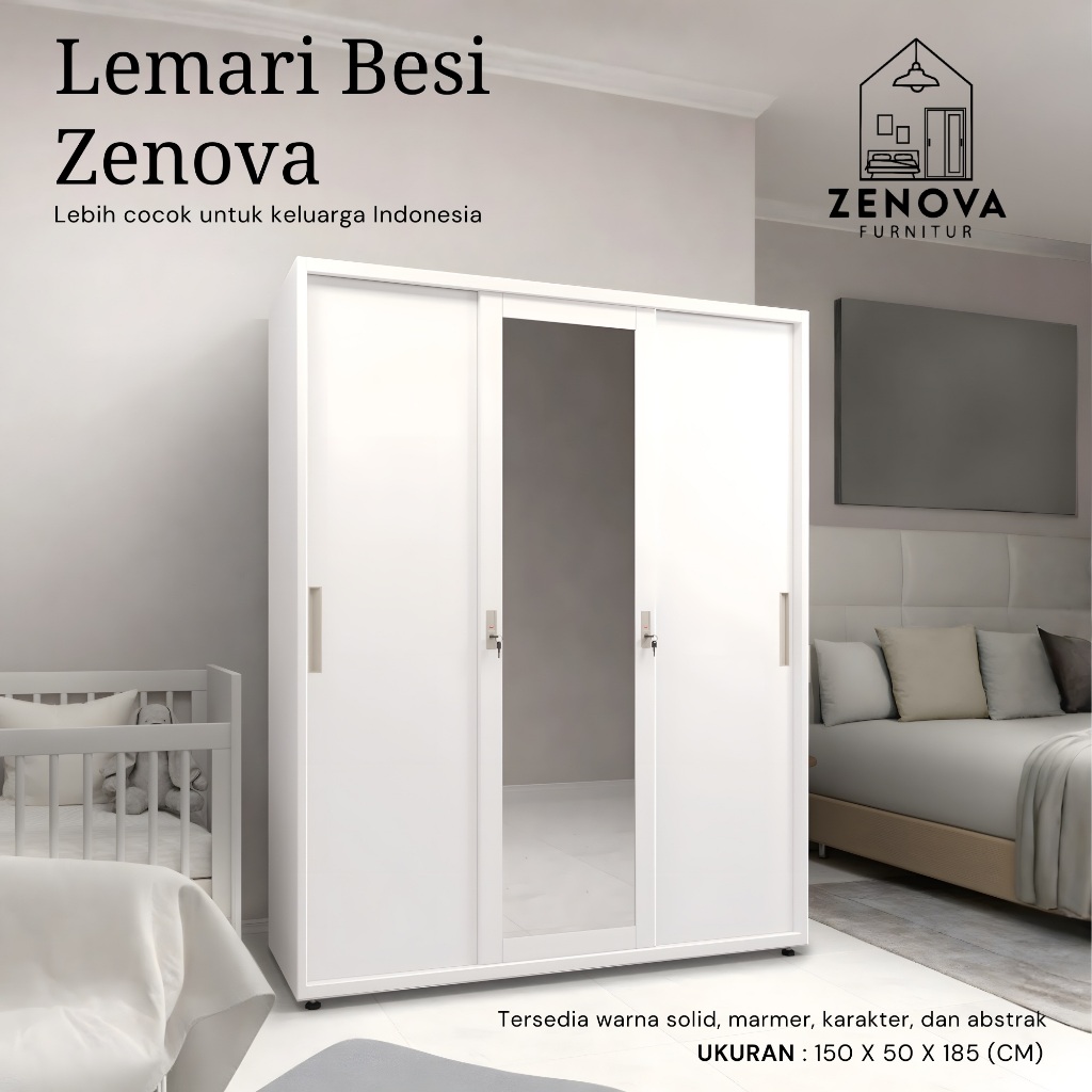 Lemari Pakaian Besi Lemari Pakaian 150cm 3 pintu slidding 2 Hanger Cermin Minimalis Gratis Ongkir