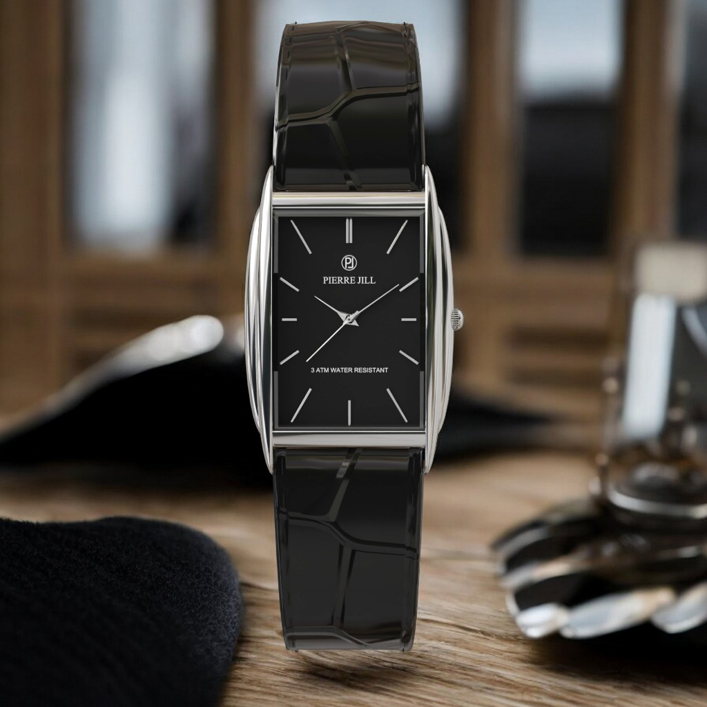 PIERRE JILL 1798 JAM TANGAN PERSEGI CASUAL FASHION PRIA TALI KULIT 3ATM WATER RESISTANT ORIGINAL FREE BOX