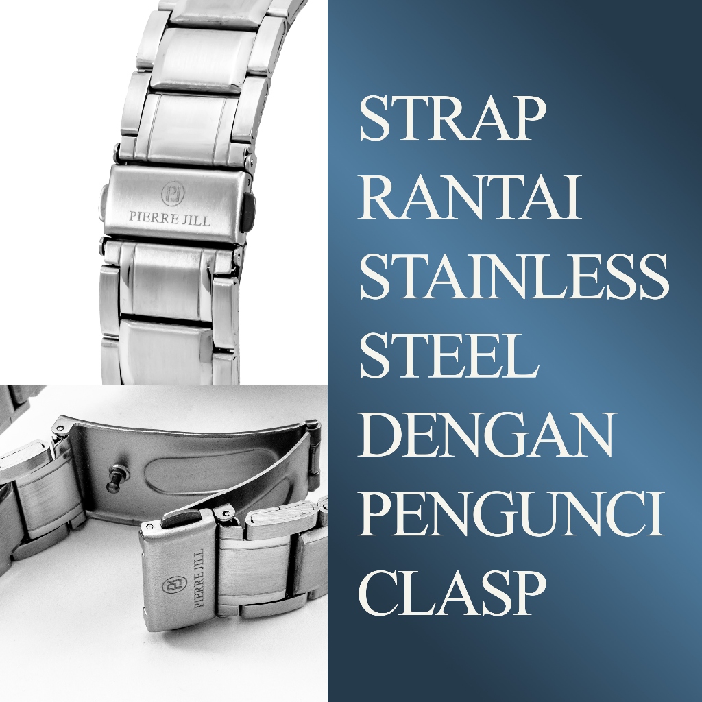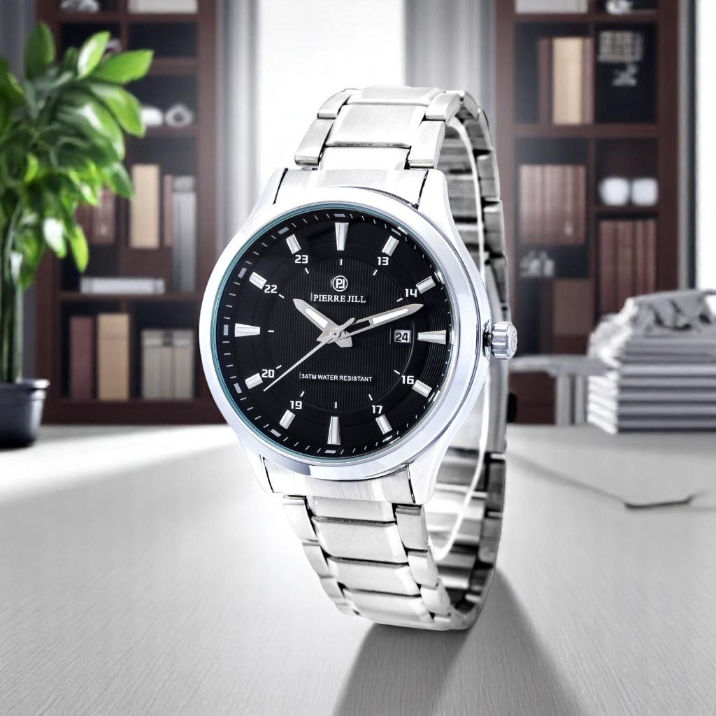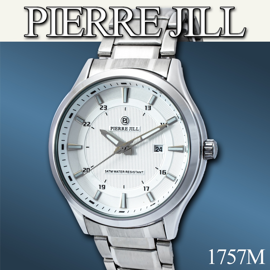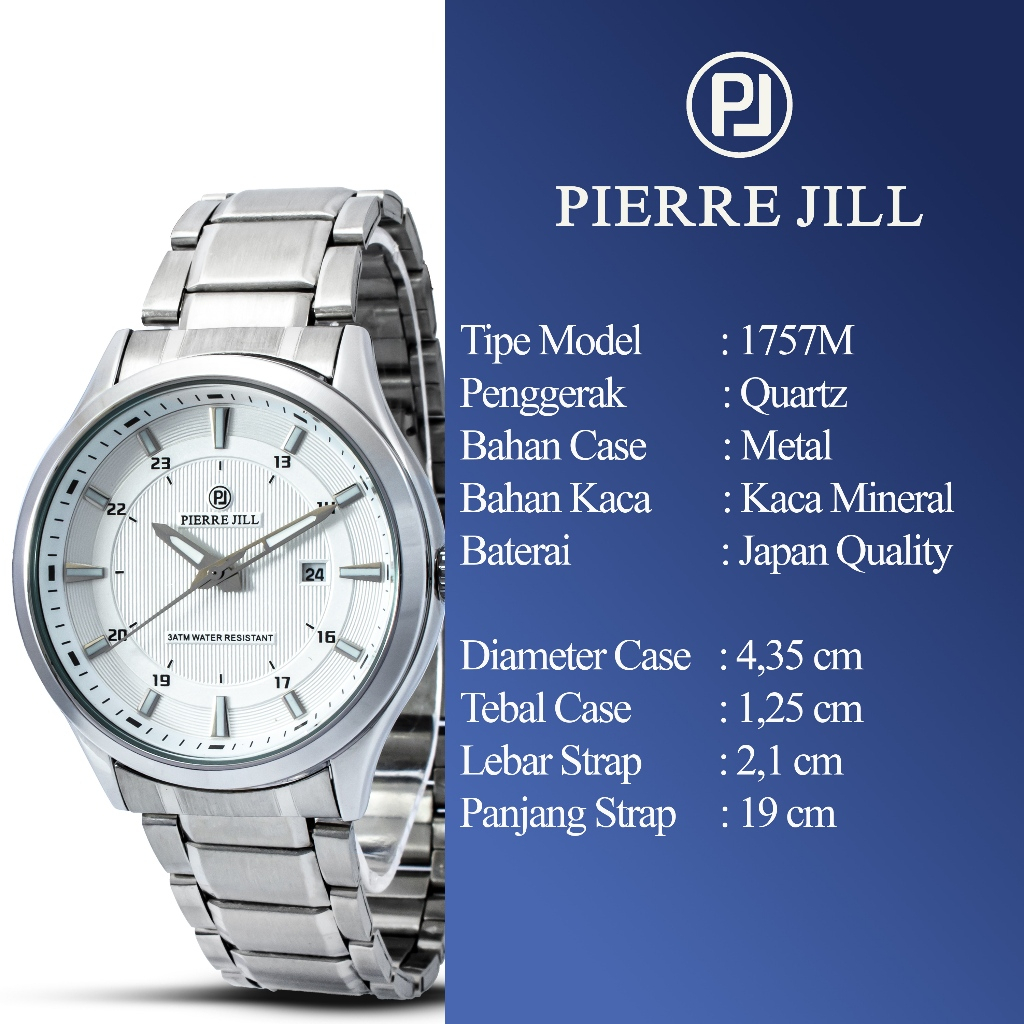 PIERRE JILL 1757 JAM TANGAN PRIA TANGGAL AKTIF RANTAI STAINLESS STEEL 3ATM WATER RESISTANT