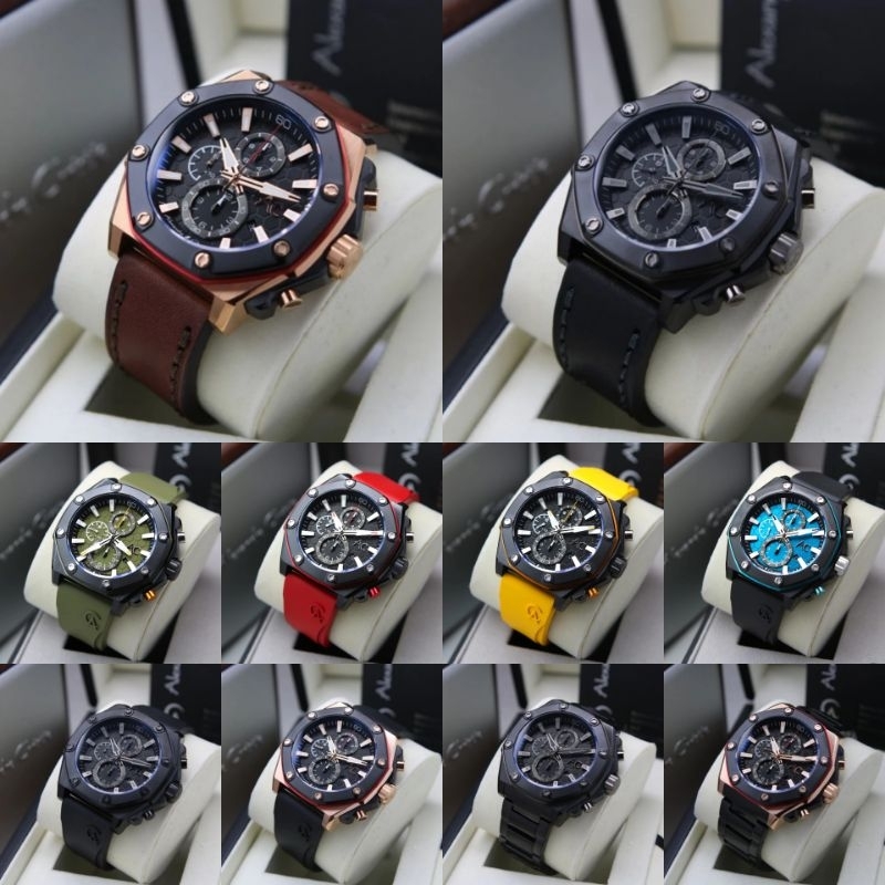 Alexandre Christie Collection AC9601/Ac 9601 Rubber / kulit jam tangan pria original