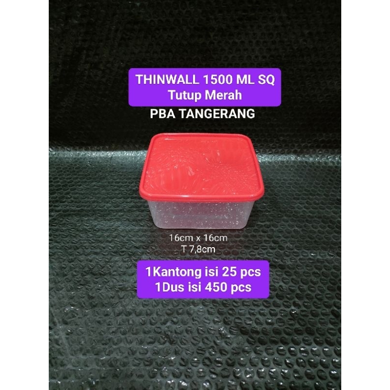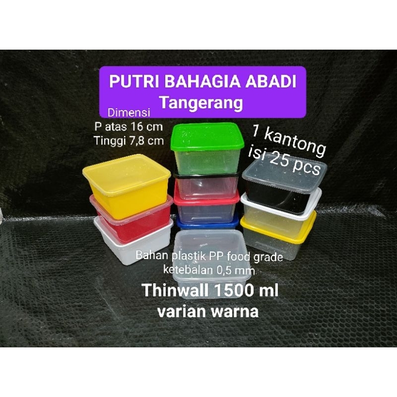 Thinwal square 1500 ML warna Box Take away kotak makan plastik per pack 25 pcs
