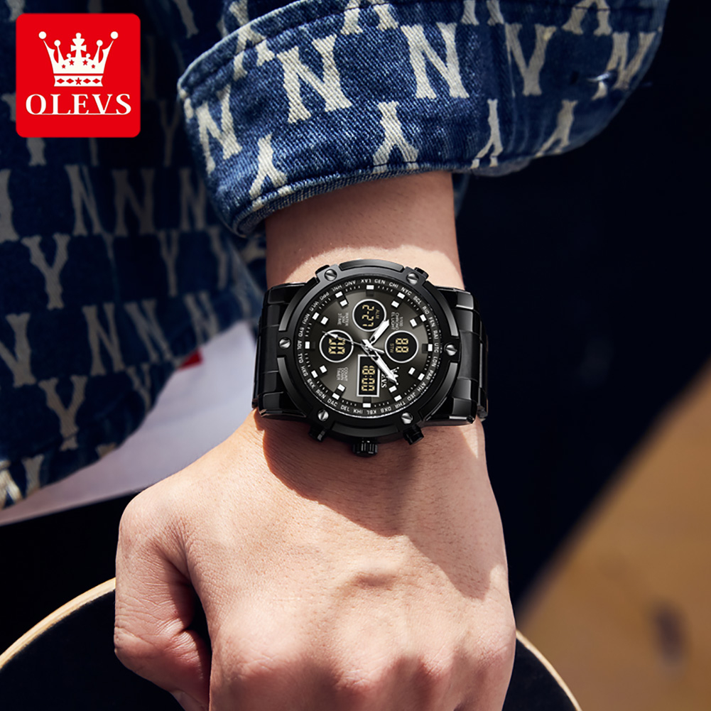 OLEVS Jam Tangan Pria Anti Air Original Multifungsi Luminous Kalender Alarm Analog Cowok Fashion Hitam Men Watch Model 1106