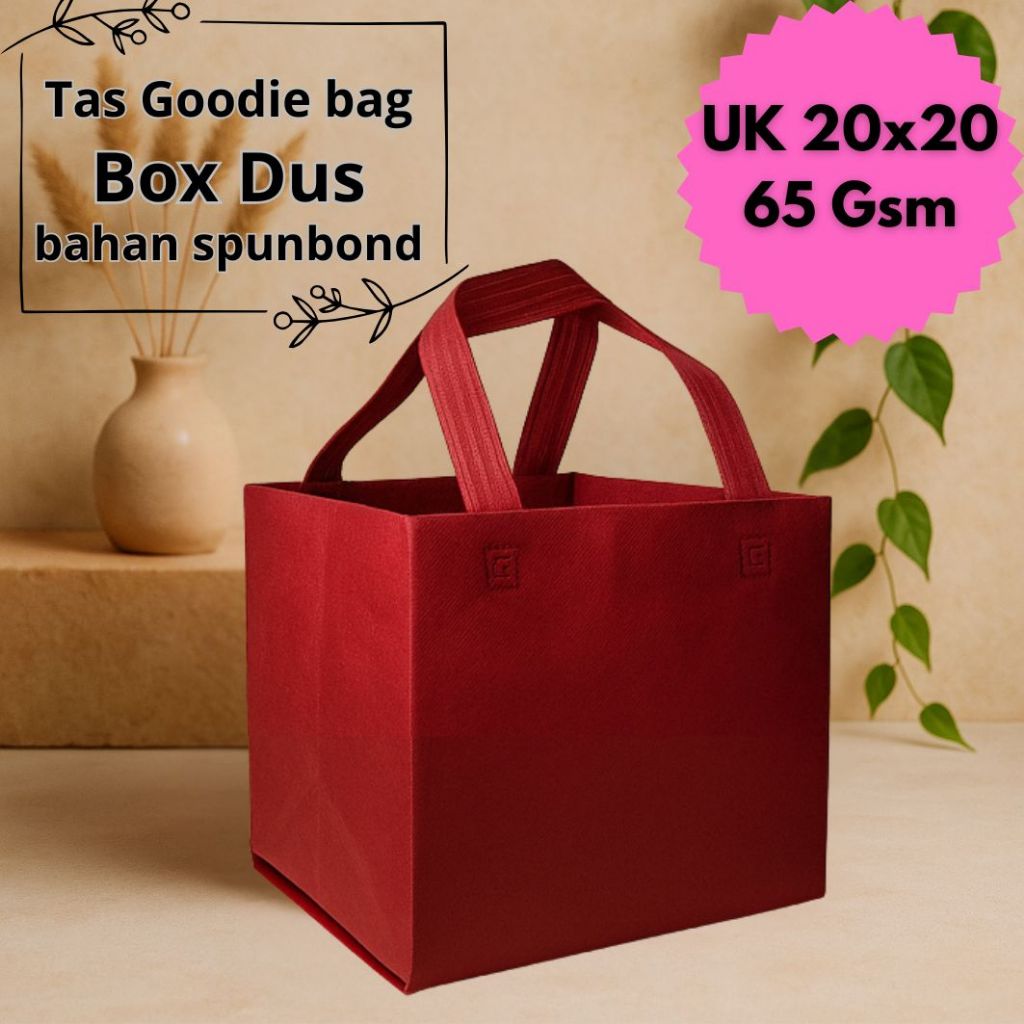 Tas goodie bag Box Dus | Bahan spunbond (1 Lusin isi 12 PCS) Tas Box Dus pres UK (20x20) | Tas Kotak Nasi | Tas Box Hajatan