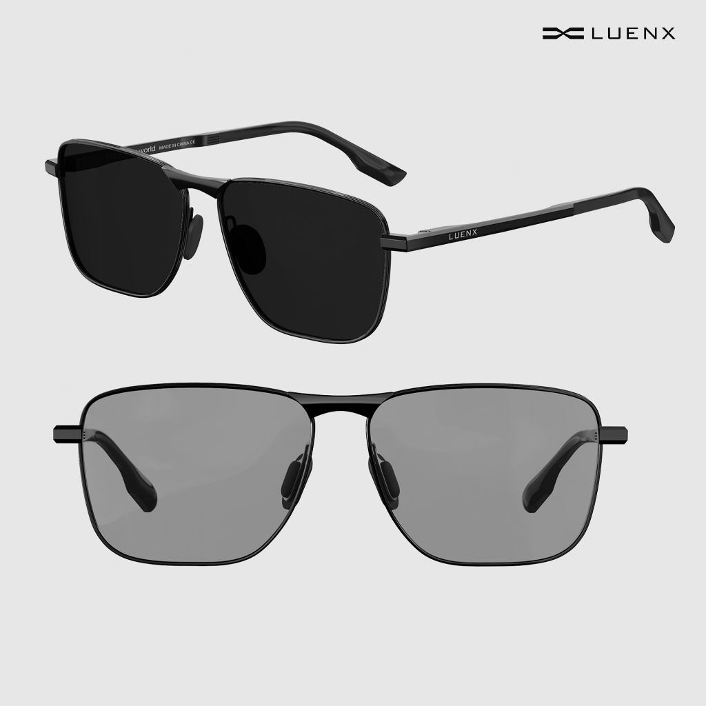 Luenx Kacamata Hitam Photochromic sunglasses, photochromic lenses Rectangular Polarized Aviator Sunglasses Uni Retro