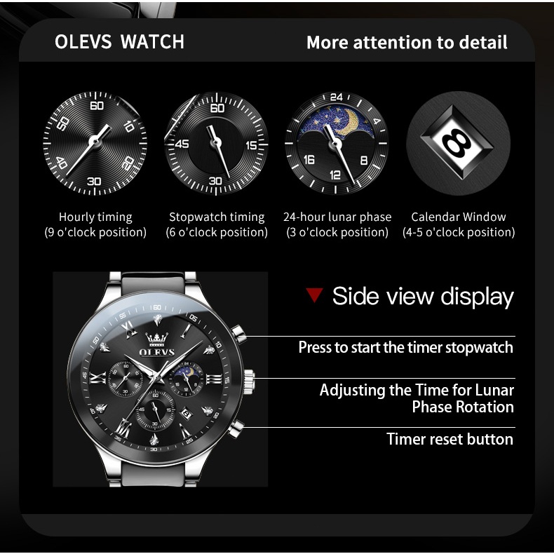 OLEVS Jam Tangan Pria Anti Air Rantai Anti Karat Original Mewah Luxury Bercahaya Kalender Multifungsi Quartz Watch Men 7004