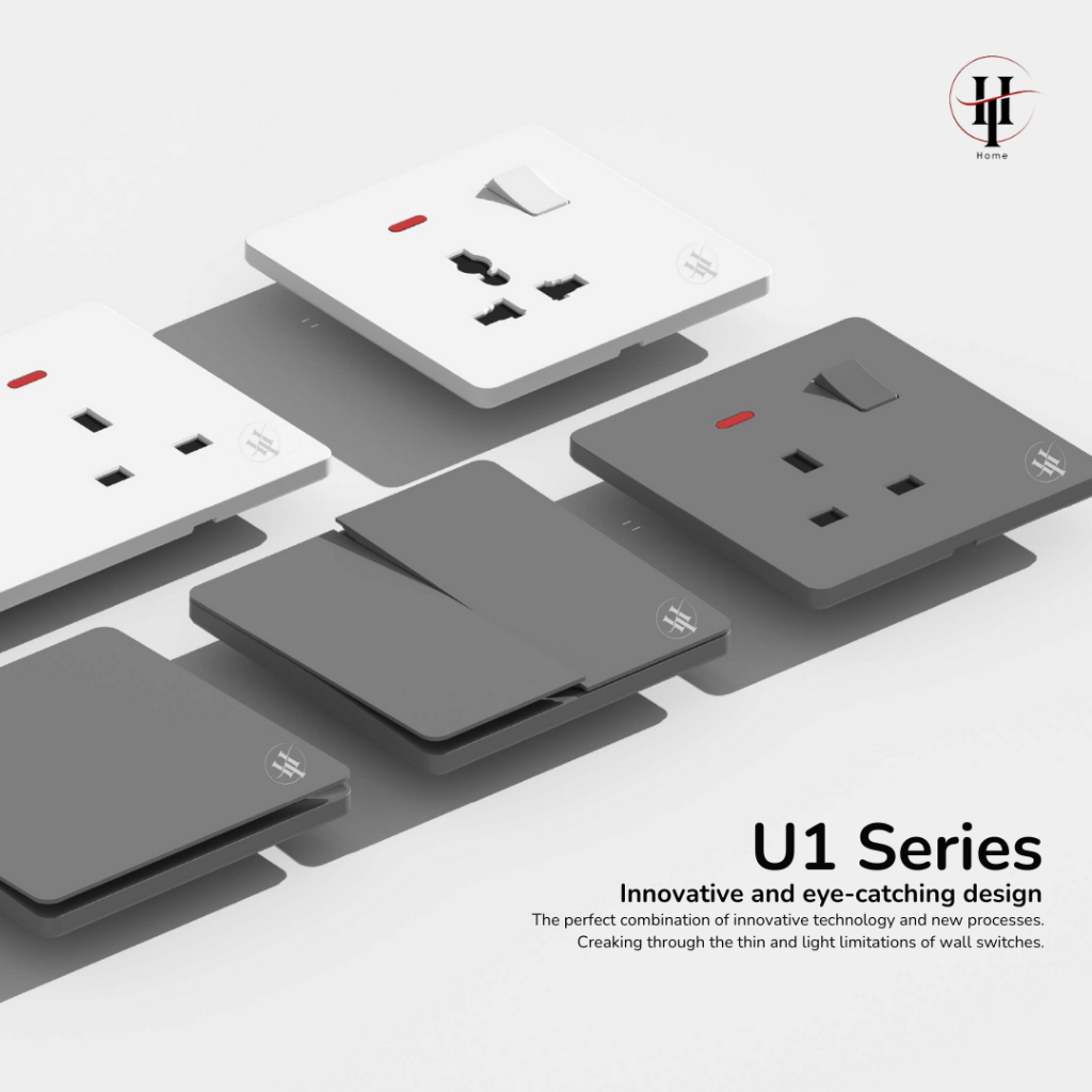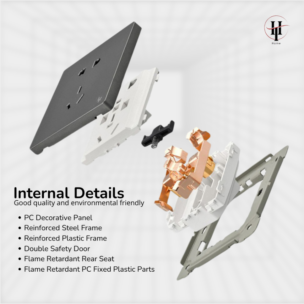 HT Electric U1 White/Grey Saklar Socket 5 Pin MF Switched Socket With Neon - ern & Elegan - Beli 1 Gratis 1 Diskon 50%