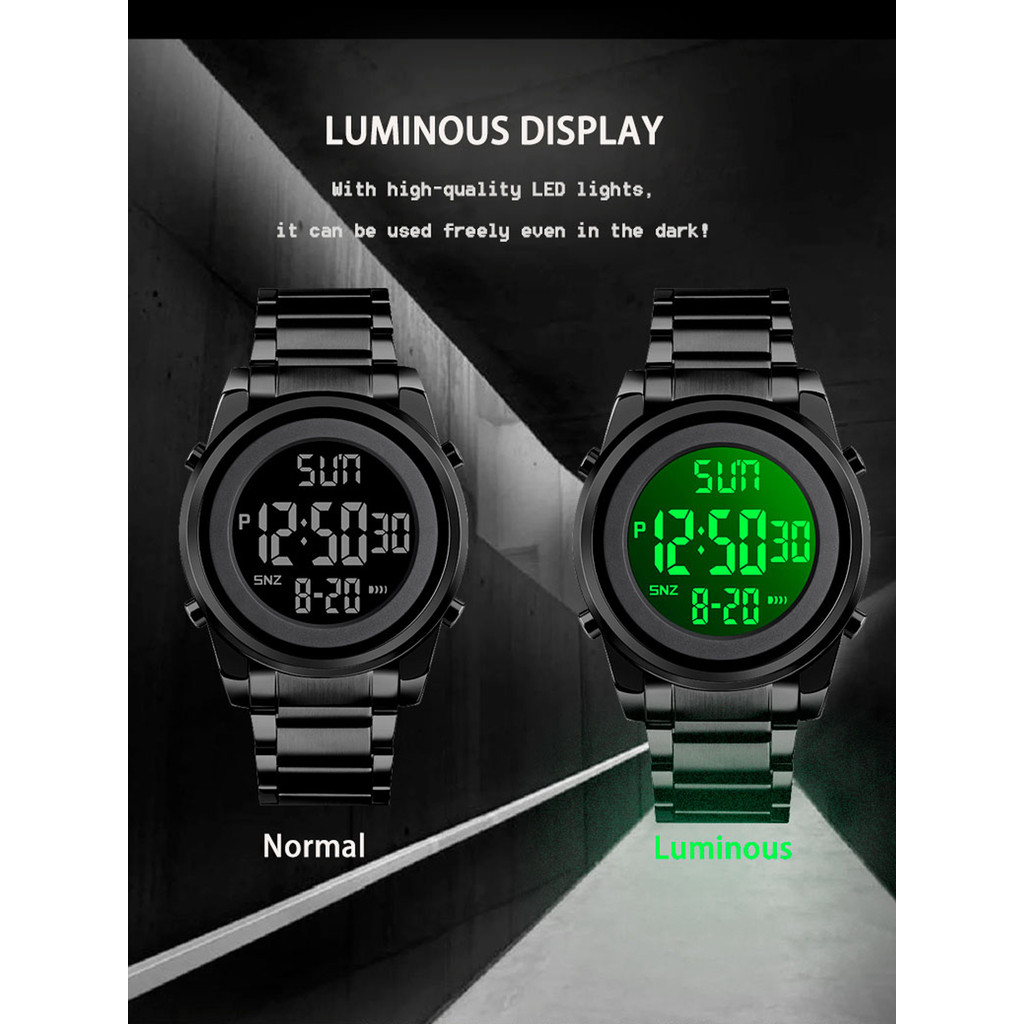 SKMEI 1611 Top Brand Luxury LED Digital Watches Pria Stainless Steel 2 Time Electron Wristwatch Militer Hitung Mundur Tahan Air