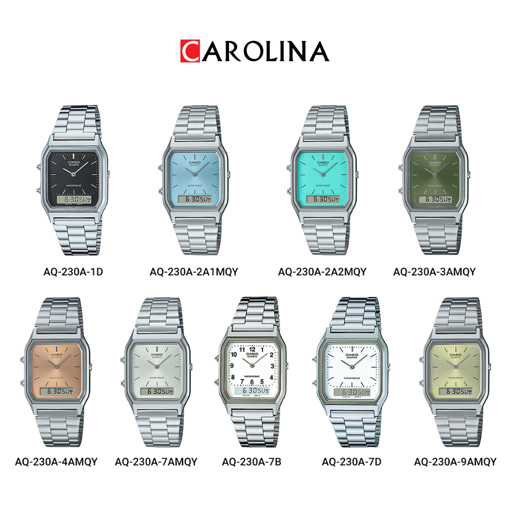 Jam Tangan Pria CASIO General AQ-230A-1D Digital Analog Dial Stainless Steel Band