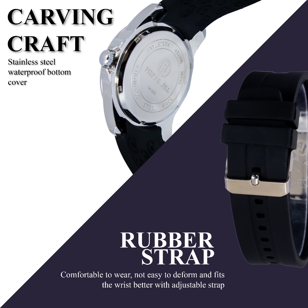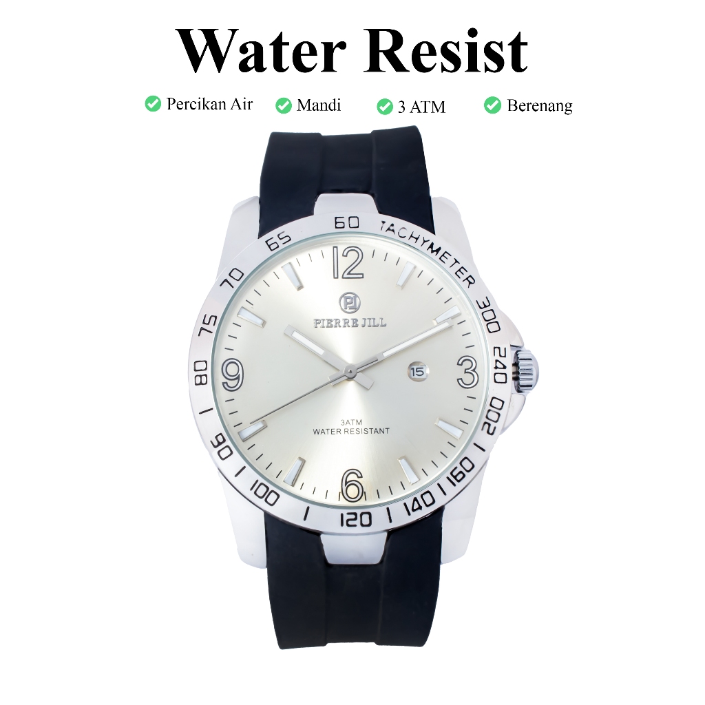 PIERRE JILL 1419 JAM TANGAN SPORT PRIA RUBBER STRAP DATE AKTIF 3ATM WATER RESISTANT 100 PERSEN ORIGINAL