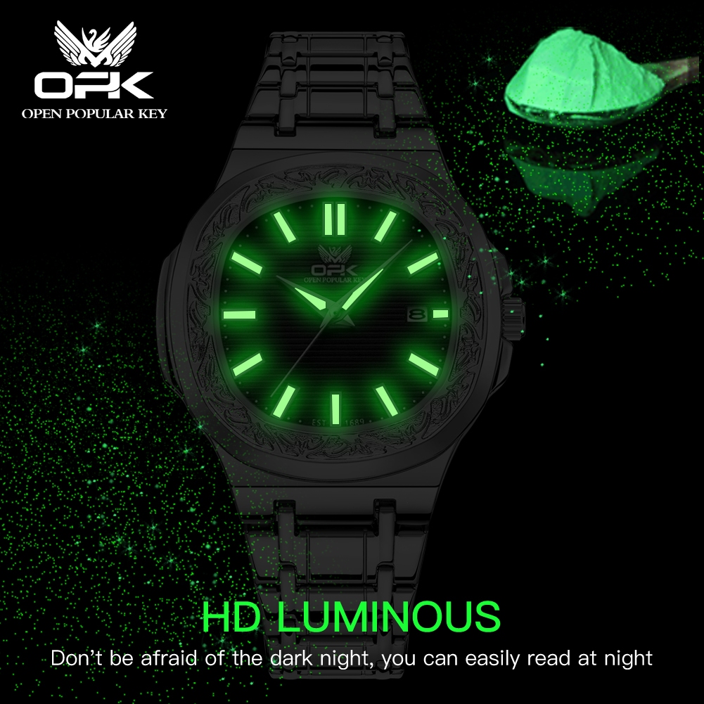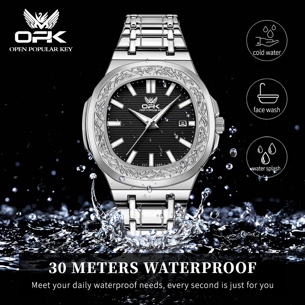 OPK 8145 Jam Tangan Pria Anti Air Mewah Keren Original Cowok Fashion Bisnis Aesthetic Kalender Tahan Arloji Pria Terbaru 2025 Hitam Putih