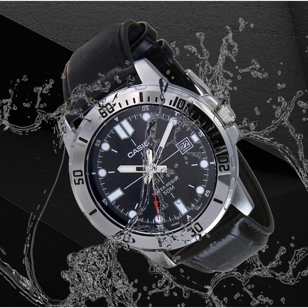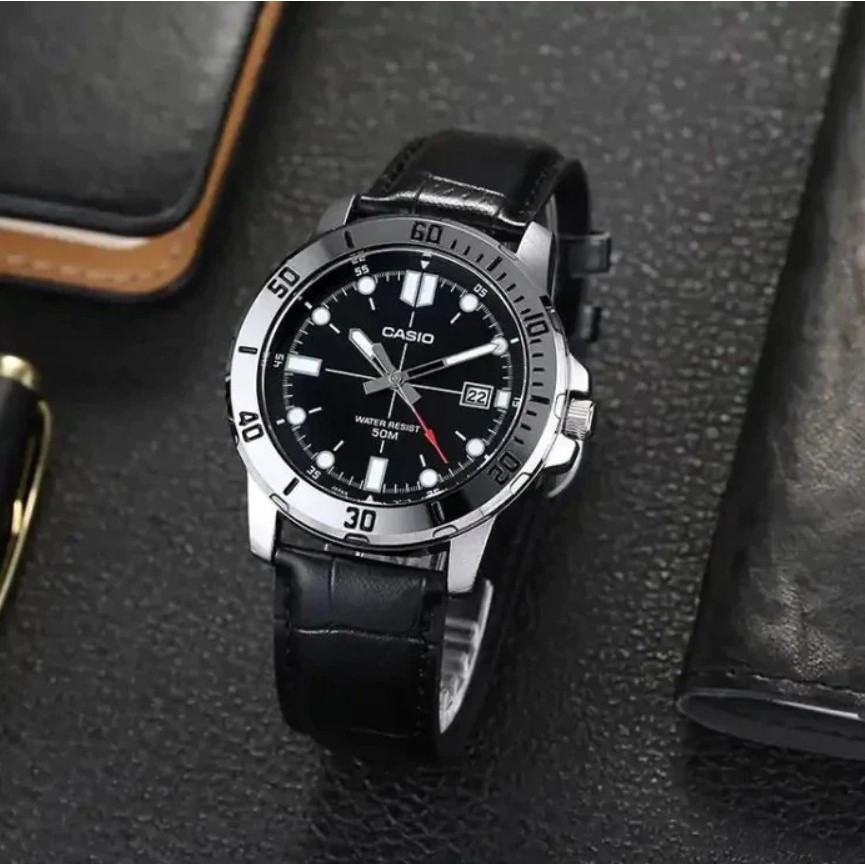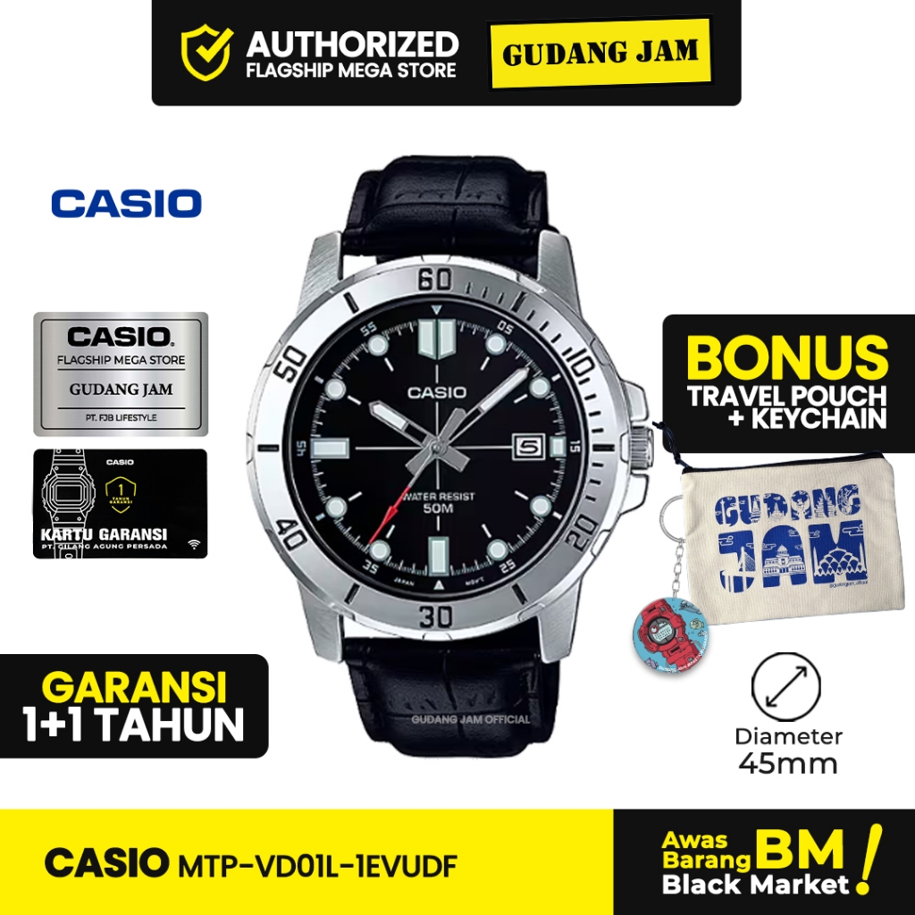 Jam Tangan Pria Casio MTP-VD01L-1EVUDF Black Leather Band