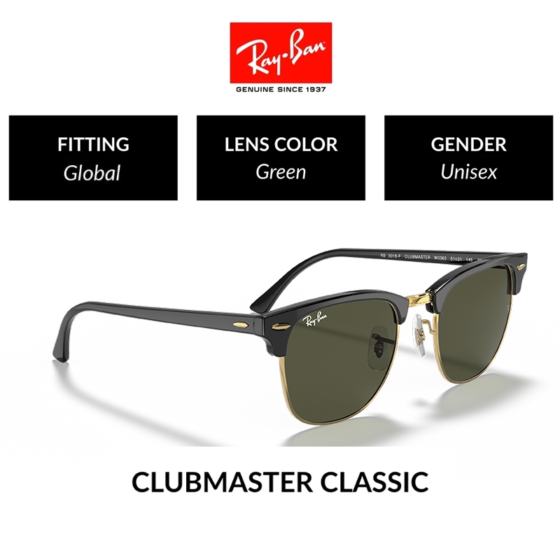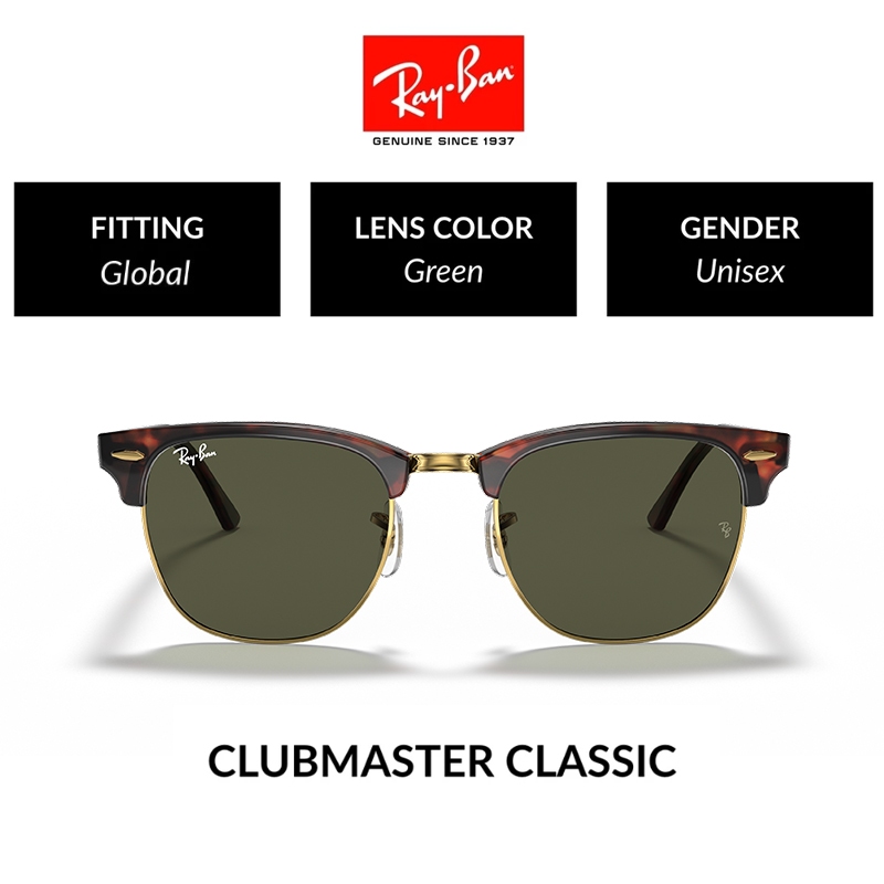 New 100 PERSEN Original Ray-Ban Kacamata Hitam CLUBMASTER RB3016 Sunglasses Black pria wanita Grey