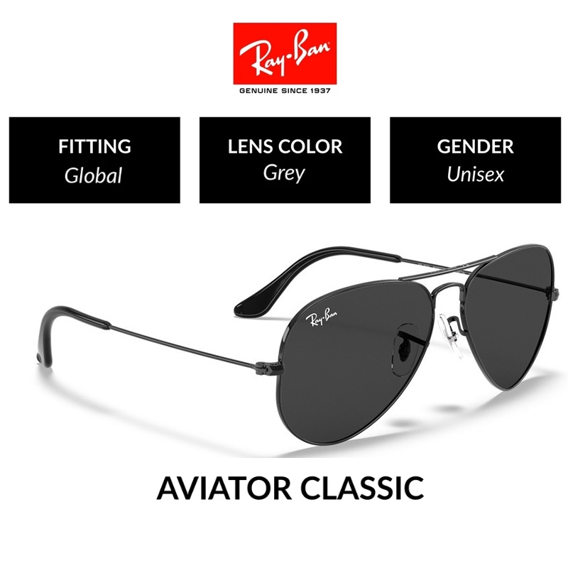 NEW 100 PERSEN Original Ray-Ban Kacamata Hitam Aviator RB3025 Sunglasses Black pria wanita Ori black Grey