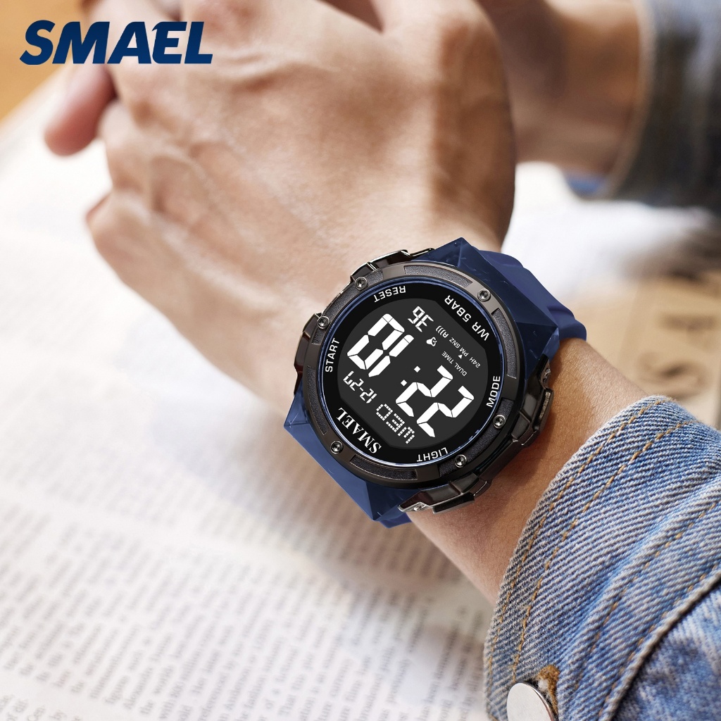 SMAEL 8112 Jam Tangan Olahraga Pria dengan Pencahayaan Malam, Tahan Air, Cocok untuk Berenang