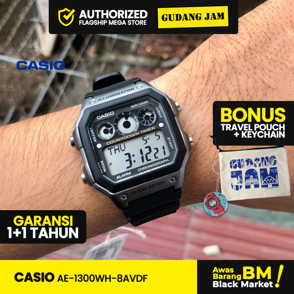 Jam Tangan Casio Original AE-1300WH-8AVDF Illuminator Black Resin Band