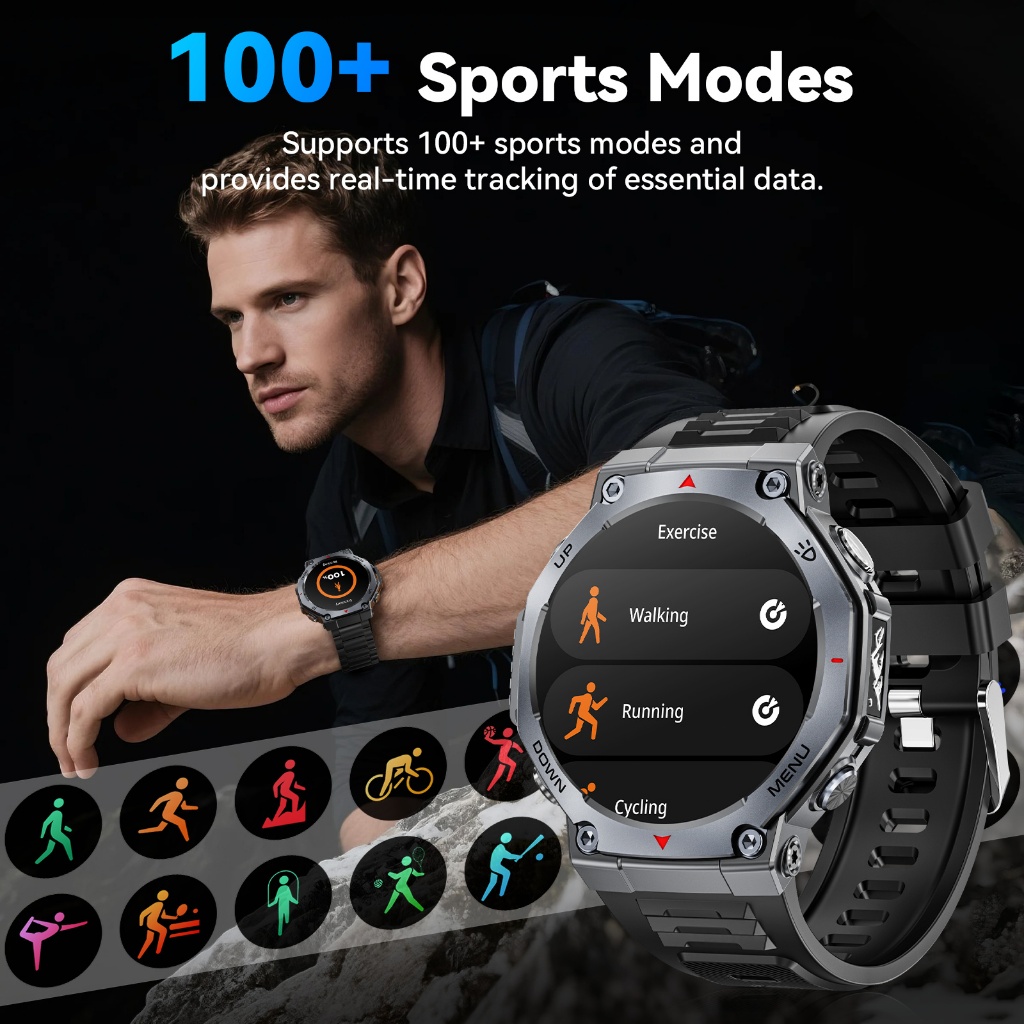 ENC Military Smartwatch Pria with 1.43-inch ultra high definition AMOLED touch screen (for answering/making calls), 525mAh battery, equipped