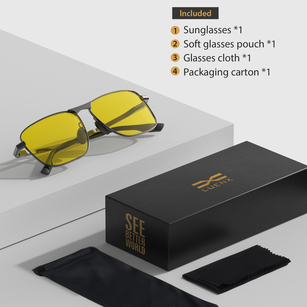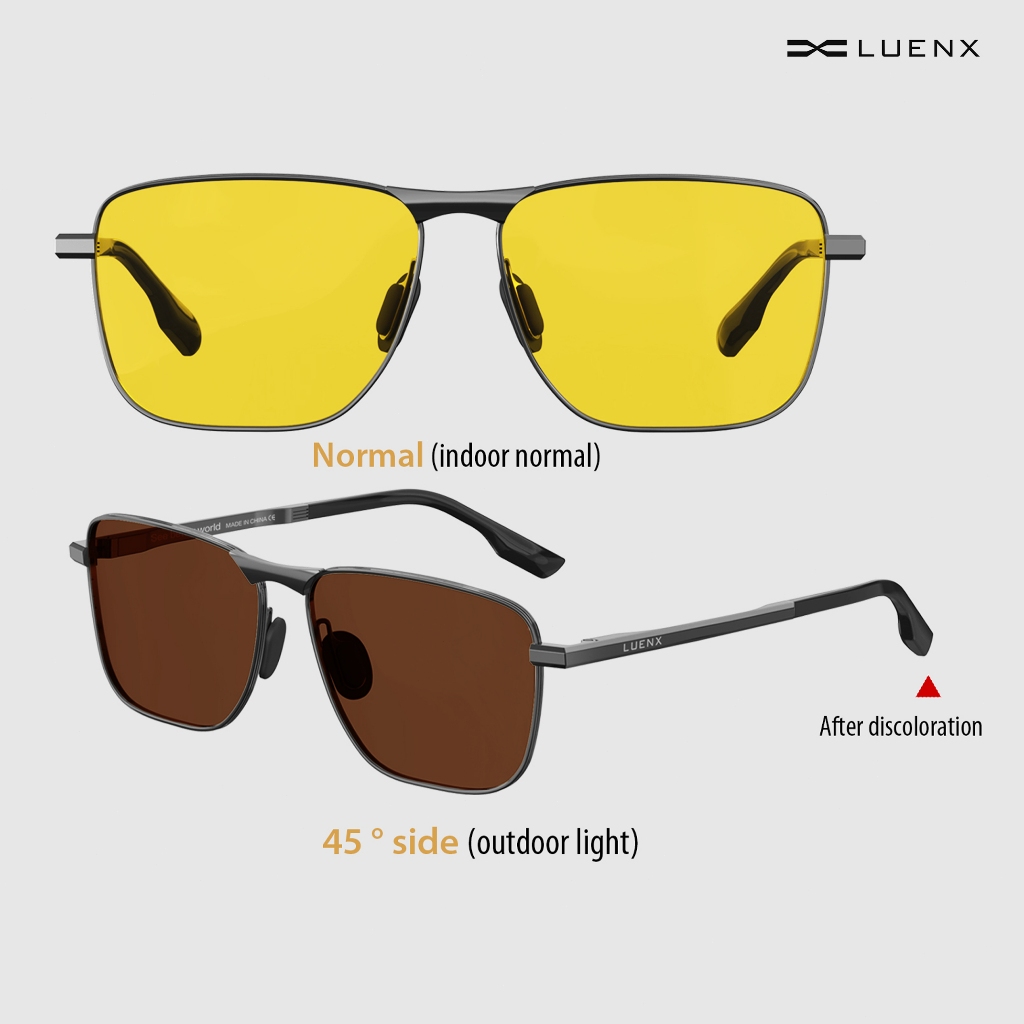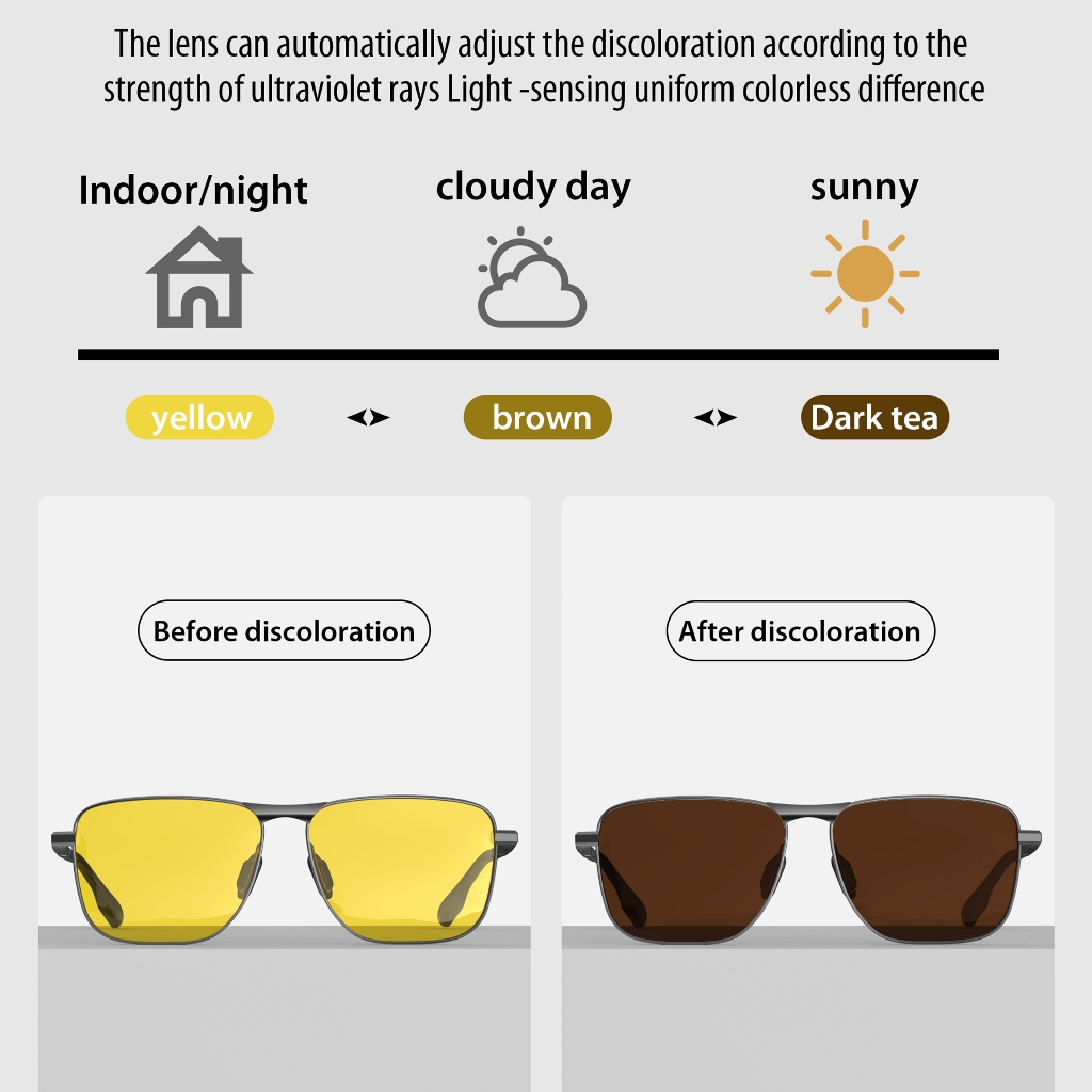 Luenx Kacamata Hitam Photochromic sunglasses, photochromic lenses Rectangular Polarized Aviator Sunglasses Uni Retro