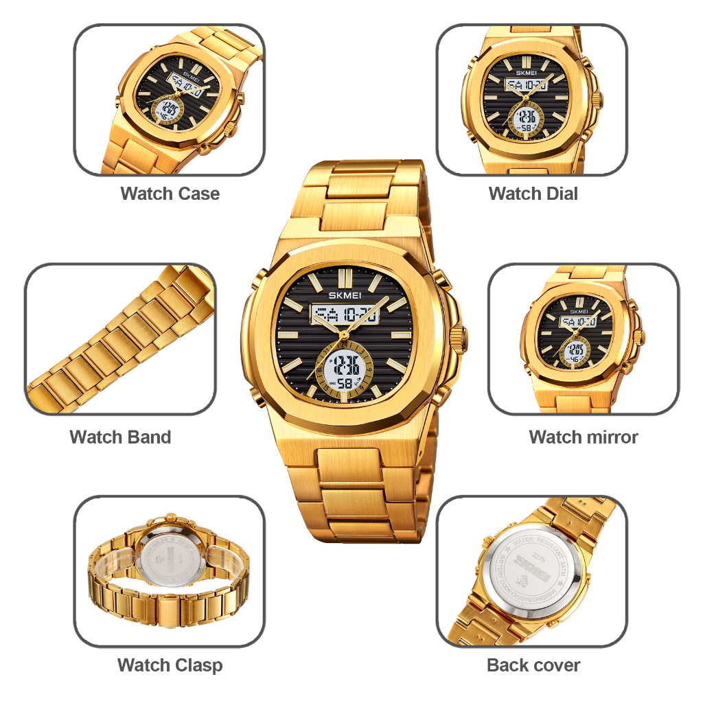 SKMEI 2279 Jam Tangan Pria Digital Analog Watch Tali Stainless Rantai Anti Air 3 Bar MGOS