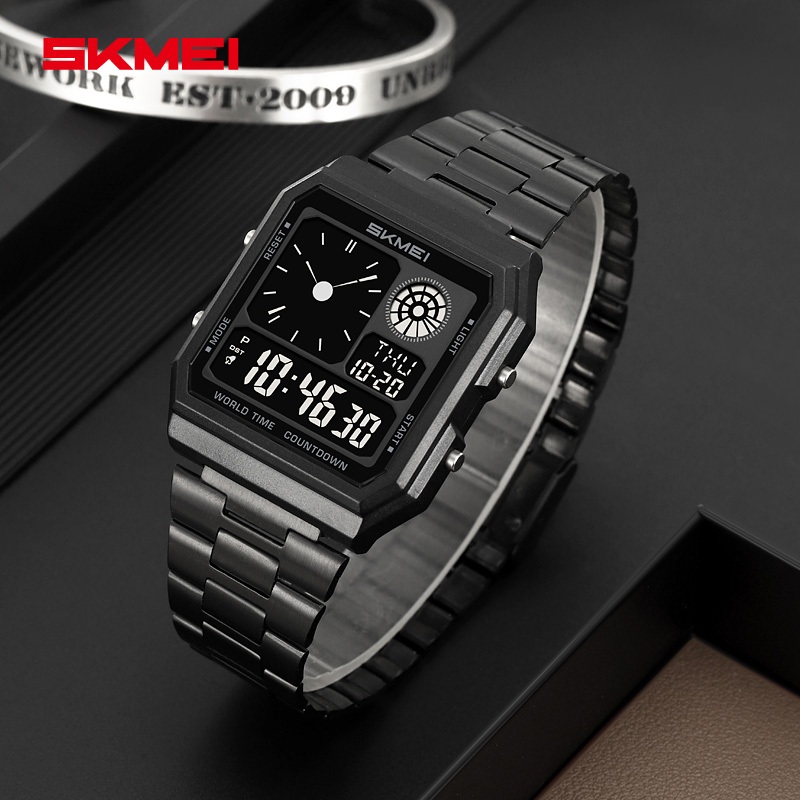 SKMEI 2353 Jam Tangan Pria Digital World Time Tali Stainless Tahan air MGOS