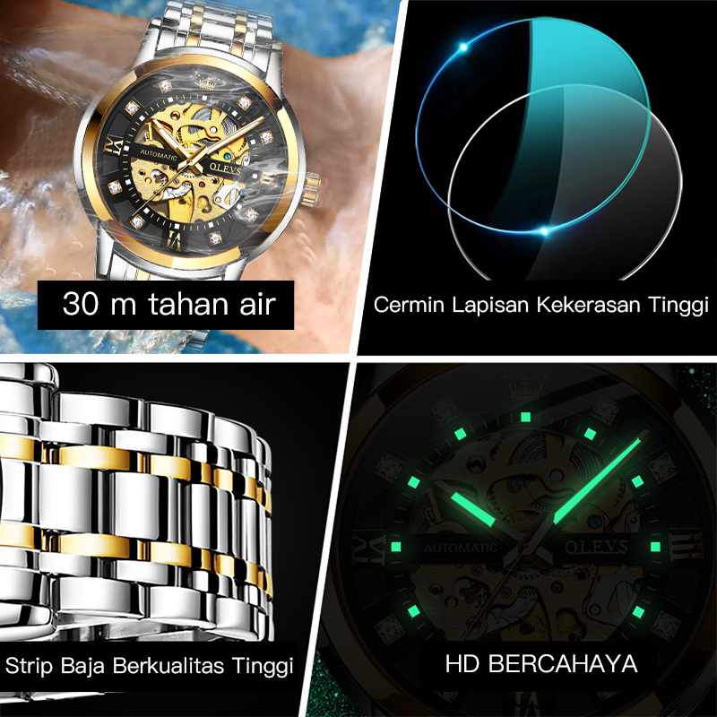 OLEVS Jam Tangan Automatic Pria Anti Air Original Tahan Keren Terbaru Luxury Stainless Watch Men