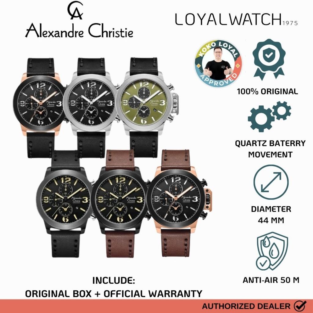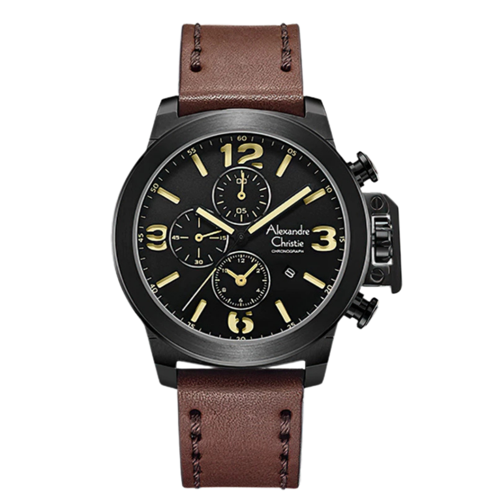 Jam Tangan Alexandre Christie Chronograph Pria 6280 GCL Leather / Kulit Original Garansi Resmi