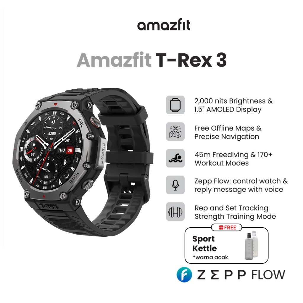 Smartwatch Amazfit T-Rex 3 48mm baterai 20 hari 177 Sports Modes Waterproof GPS