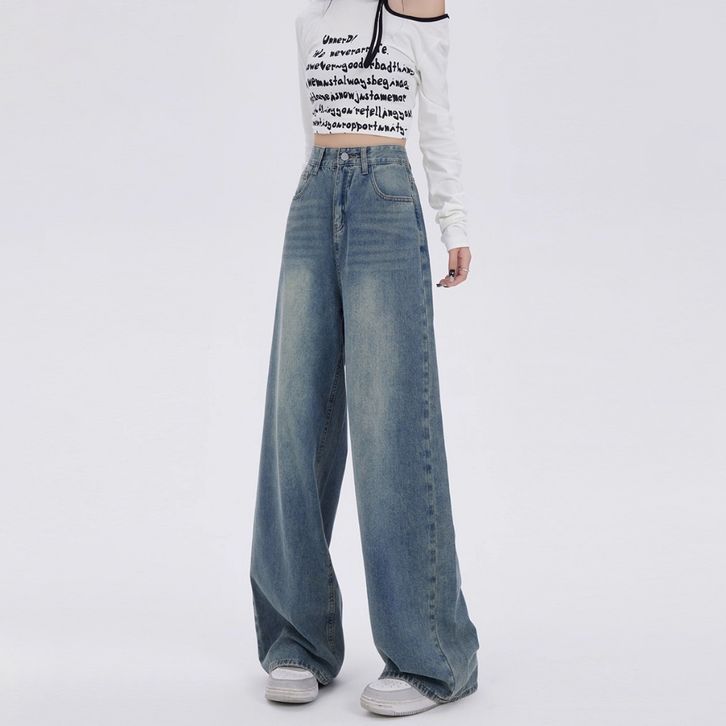 Loyka New Biru Kekinian Highwaist Kulot Loose Celana Wide Leg Jeans Wanita Korea Style Jeans Baggy