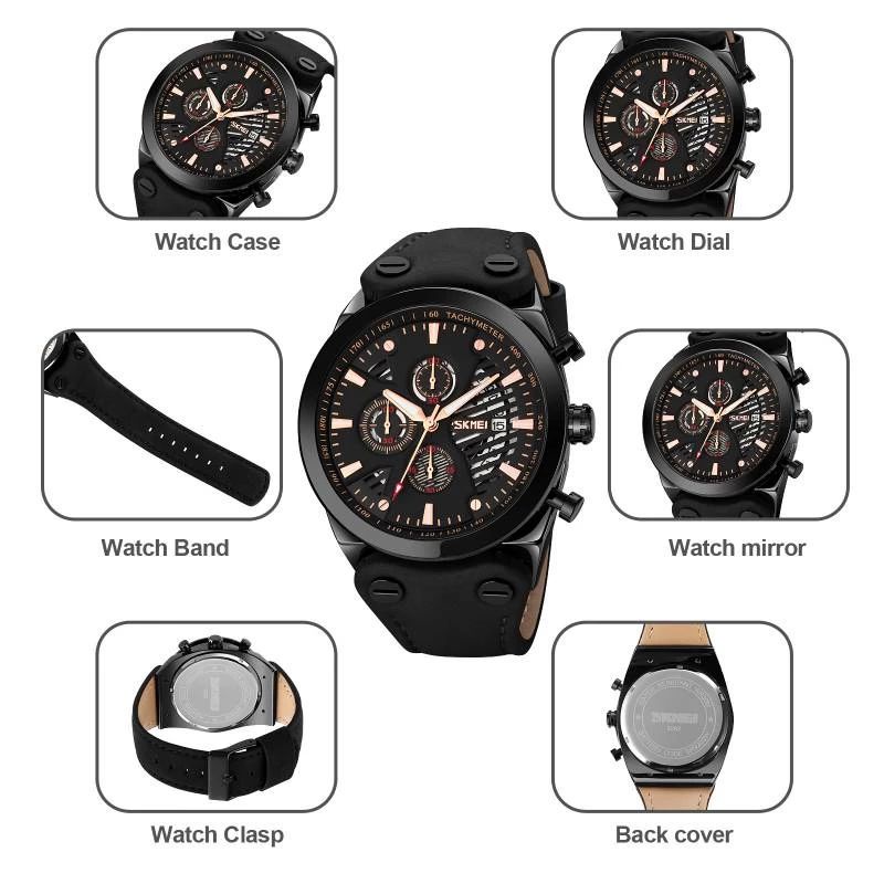 SKMEI 9282 Jam Tangan Pria Analog Chronograph Tali Kulit MGOS