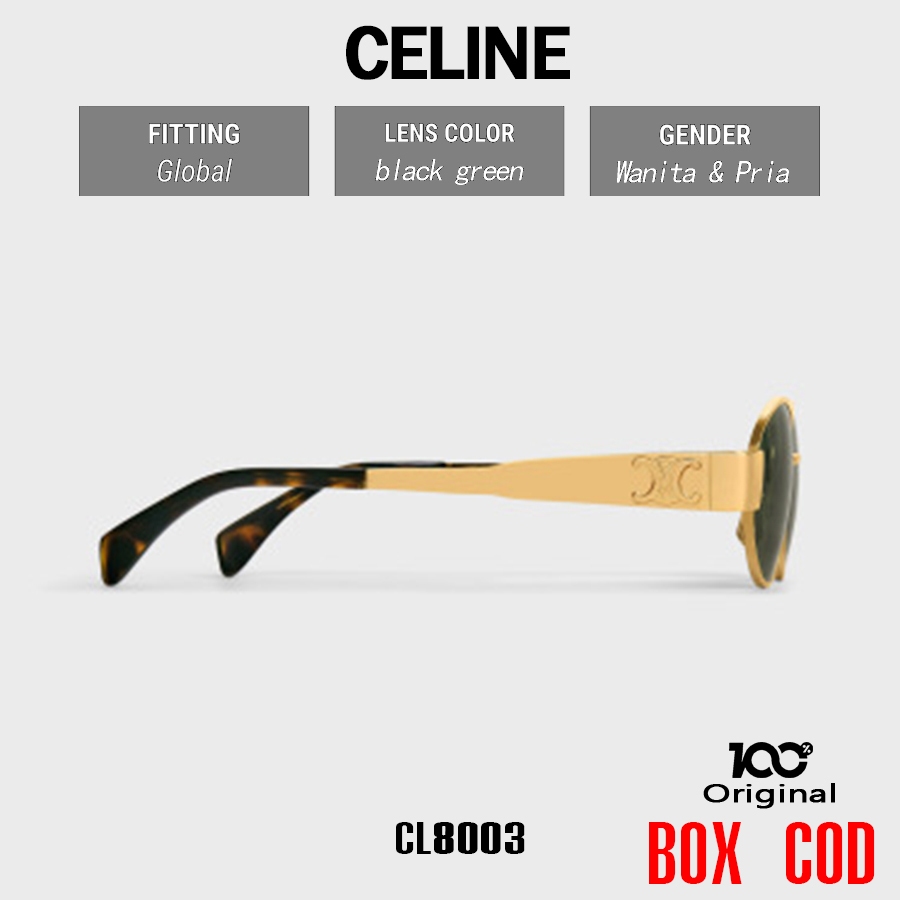 100 PERSEN Original Kacamata Hitam CELINE Sunglasses TRIOMPHE METAL CL8003 Polished Black Wanita Pria