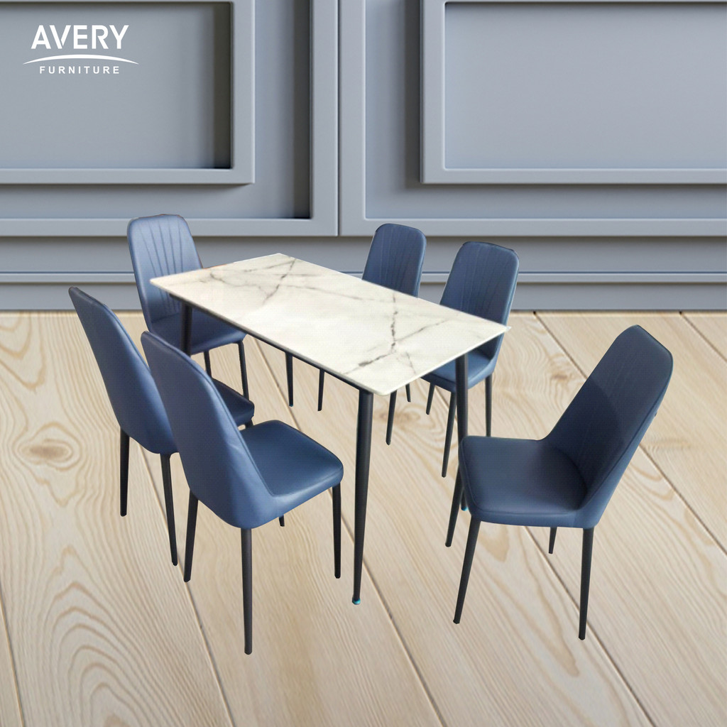 Meja Makan Set Marmer Minimalis 4 Kursi / 6 Kursi Avery - DT CARLO Gratis Ongkir