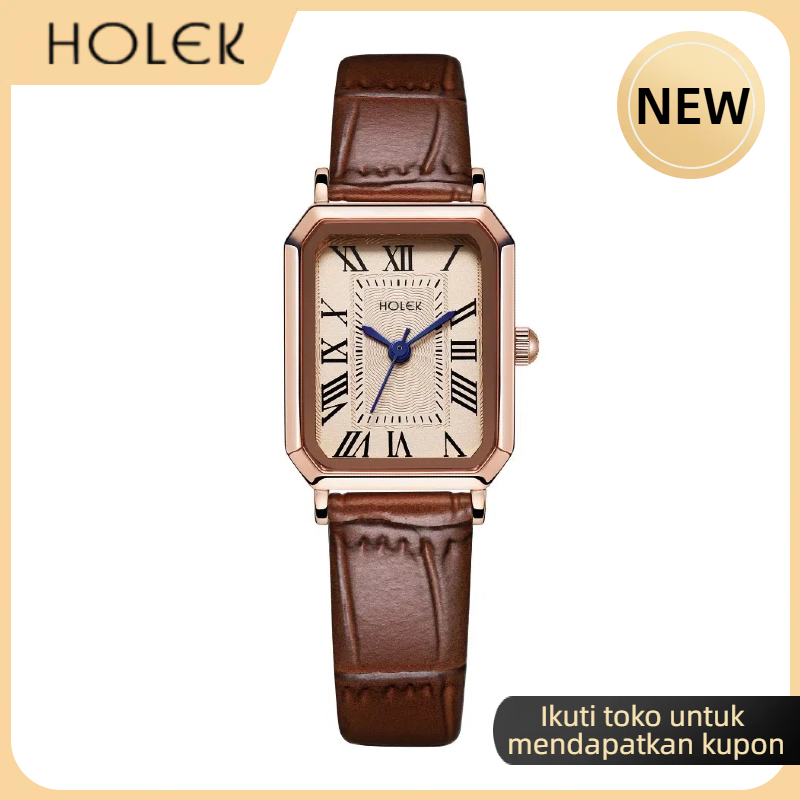 HOLEK 82012 Jam Tangan Wanita Kuarsa Sederhana Skala Romawi Persegi Retro Jam Tangan Pelajar Cewek