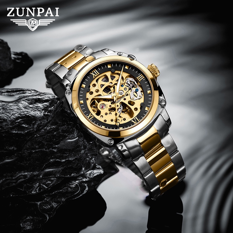 ZUNPAI Jam Tangan Pria Mekanik Otomatis Asli Anti Air Pria Hitam Bisnis Fashion Bercahaya Jam Pria Mekanik Otomatis Merek Mewah Asli