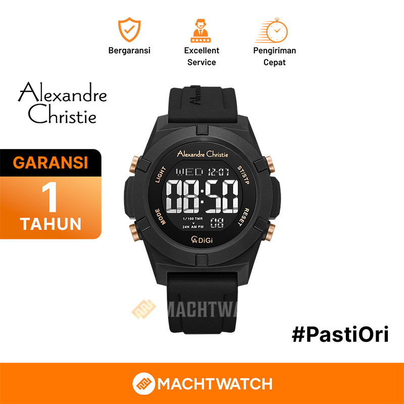Jam Tangan Pria Digital Alexandre Christie ACF-9371-MHRIPBARG Dial Black Rubber Strap