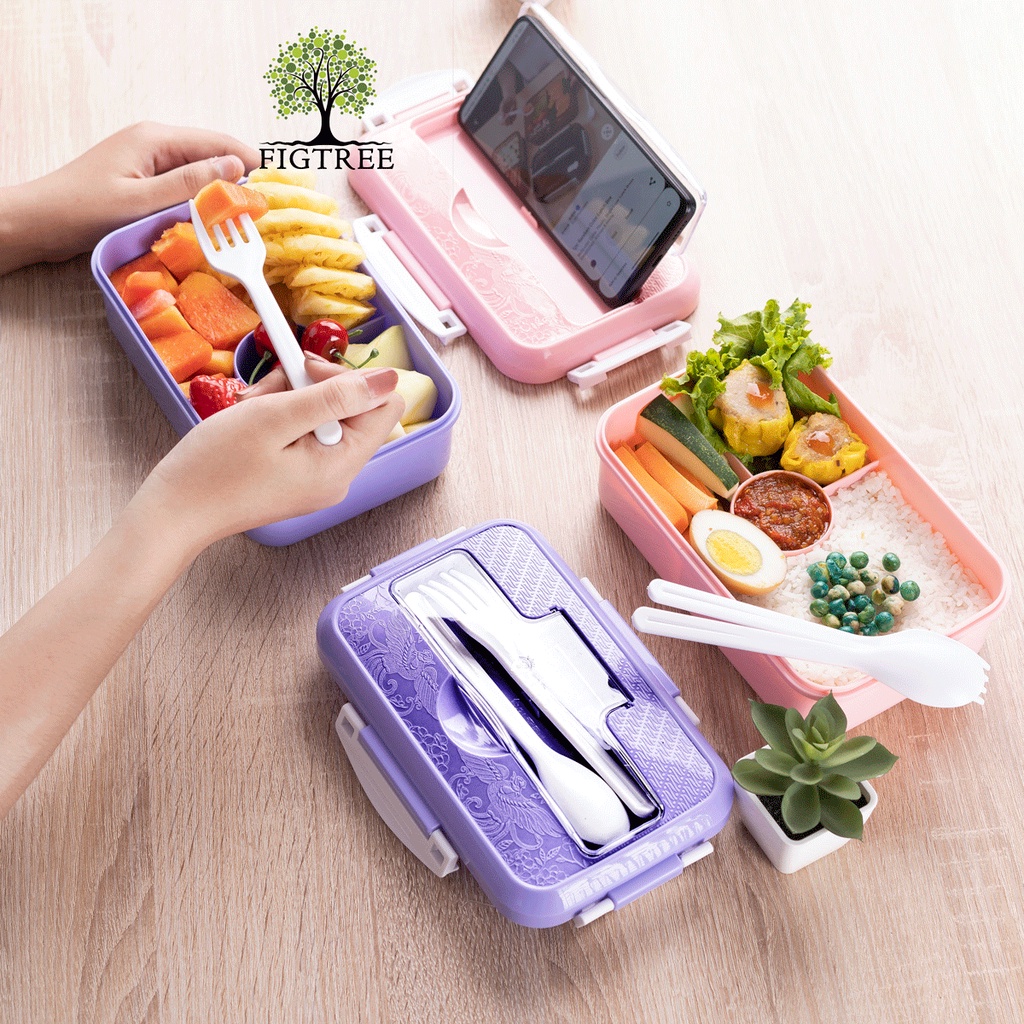 Kotak Makan Kotak Bekal Box 3 Sekat Tempat Makan Lengkap Sendok dan Garpu Lunch Box Plastik Foodgrade Murah Gratis Ongki