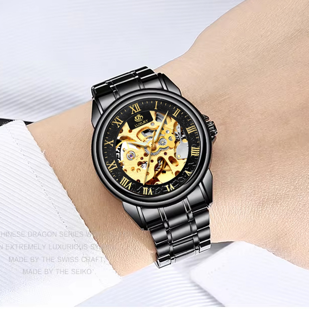 Jam Tangan Pria Automatic BINBOND Strap Stainless Steel MewahTahan air Tanpa Baterai