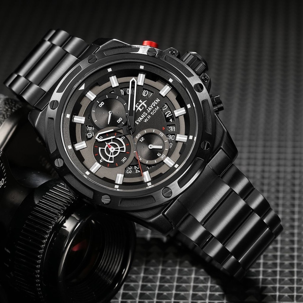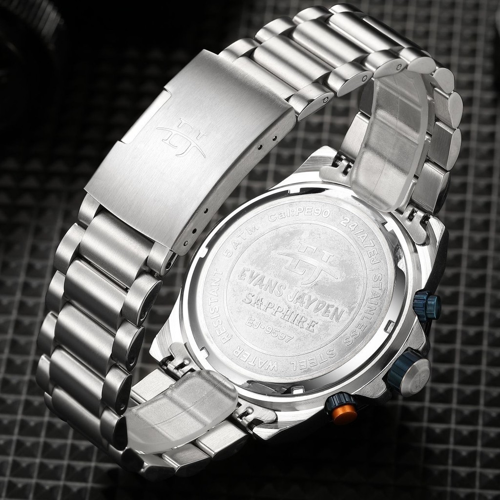 Evans Jayden Jam Tangan Pria 9597 Rantai Stainless Steel Chrono Kaca Safir 5 ATM