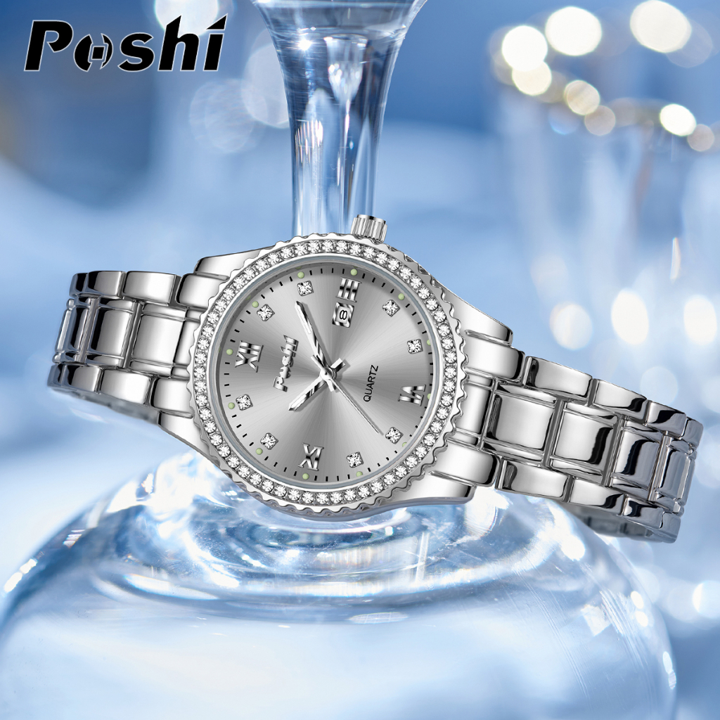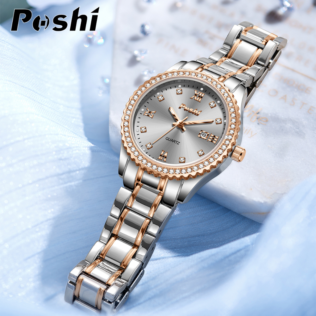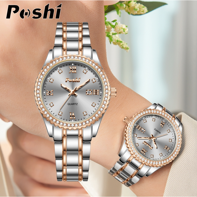 Jam Tangan Wanita POSHI Stainless Steel Tahan Air Dengan Kalender & Hari - Gaya Fashion PS990