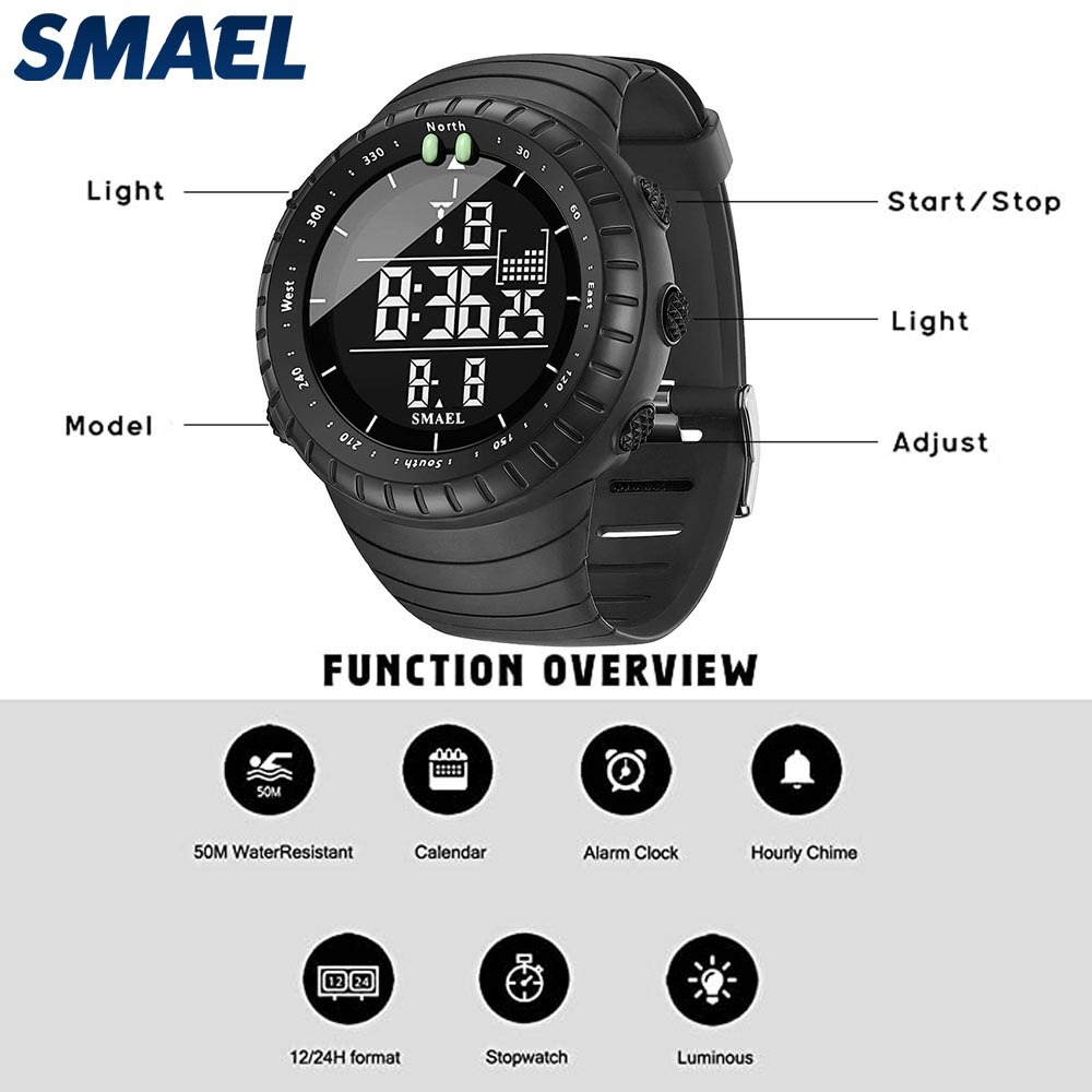SMAEL 1237 Jam Tangan Elektronik Antiair Luminous untuk Pria, Cocok untuk Aktivitas Luar Ruangan