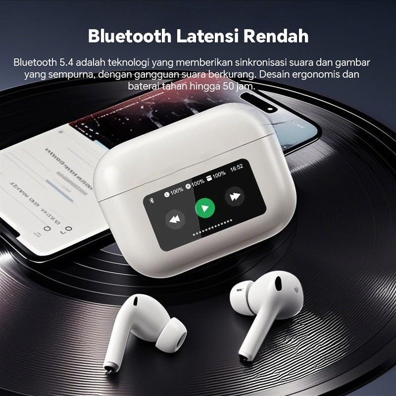 []Bluetooth Headset TWS A9 PRO ANC/ENC(Super Full Bass)LED Smart Screen Active Noise Reduction earphone bluetooth suara