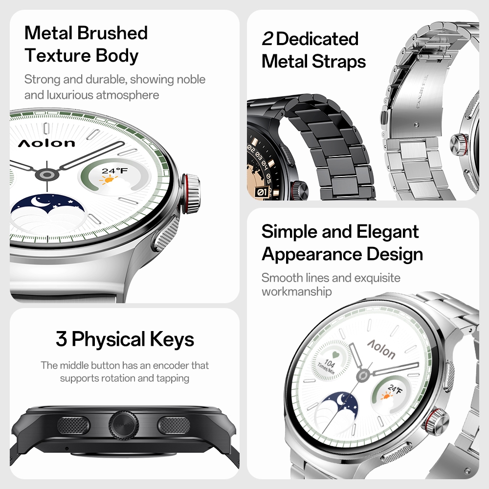 Aolon Prime 3 Jam Smartwatch 1.43-inci Amoled AOD Cover Lock Metal Case Bluetooth Call 100+ Sports