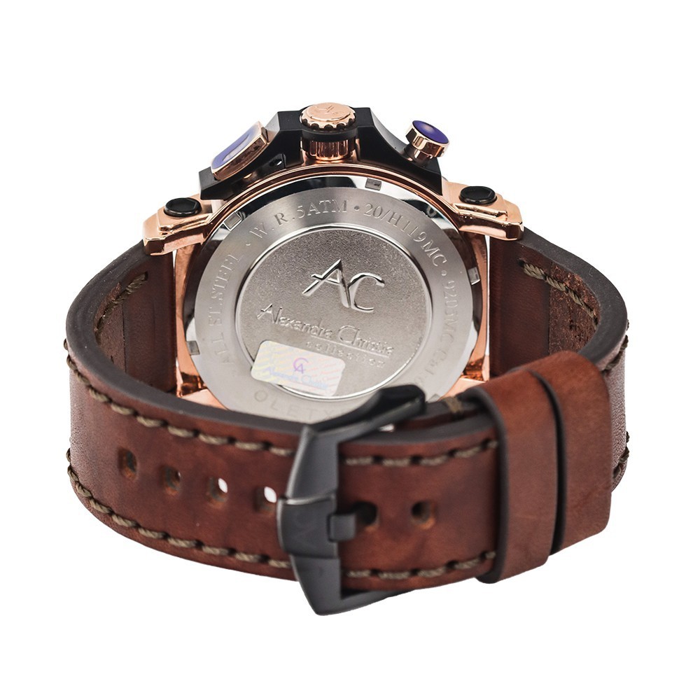 Jam Tangan Pria Alexandre Christie Chronograph AC 9205 MCLBRBA Black Dial Brown Leather Strap