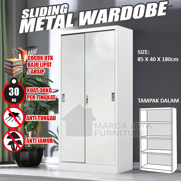 Lemari Pakaian BESI JUMBO Sliding 2 / 3 Pintu Wardrobe Baju Anti Jamur Rayap Banjir Lebih Tahan Karat