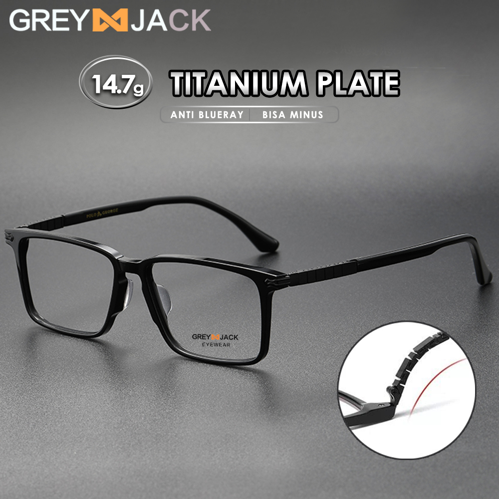 Grey Jack Frame Kacamata Bahan Titanium Ringan Kokoh Fashion Bisnis Model Kotak Bisa Lensa Minus Antiradiasi Blueray Pho